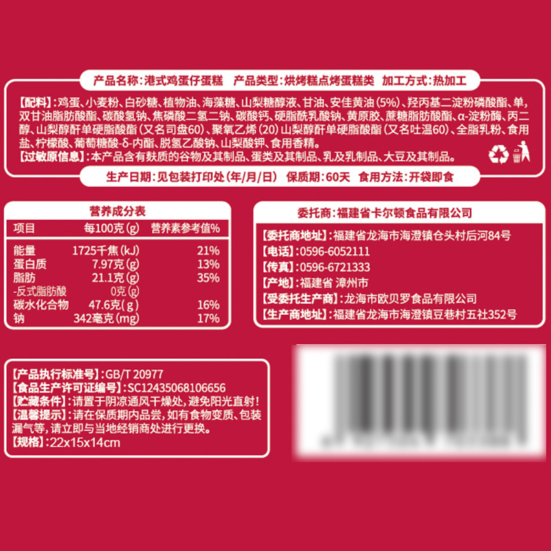 港式面包鸡蛋糕早餐 卡尔顿【500g】