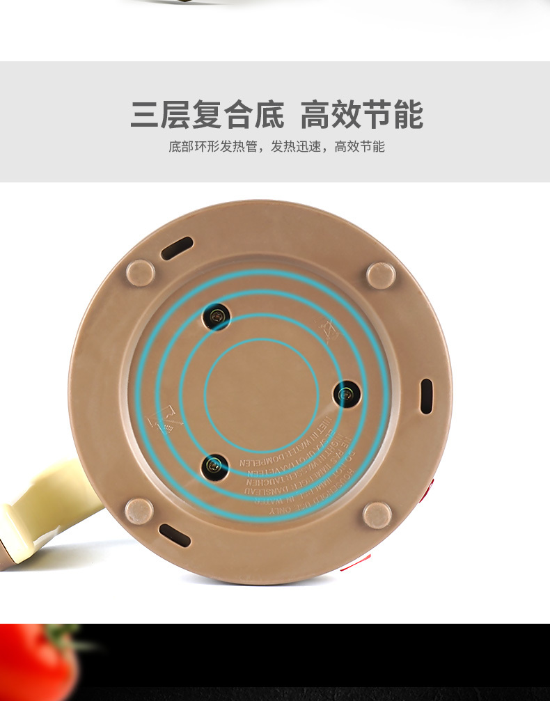 产品颜色:咖啡色 产品容量:1.5L 额定功率:600W 额定电压:220V~ 产品毛重:1.1KG 产品尺寸:230*180*200MM 包装尺寸:185*180*220MM 装箱数量:单台为网购盒包装箱