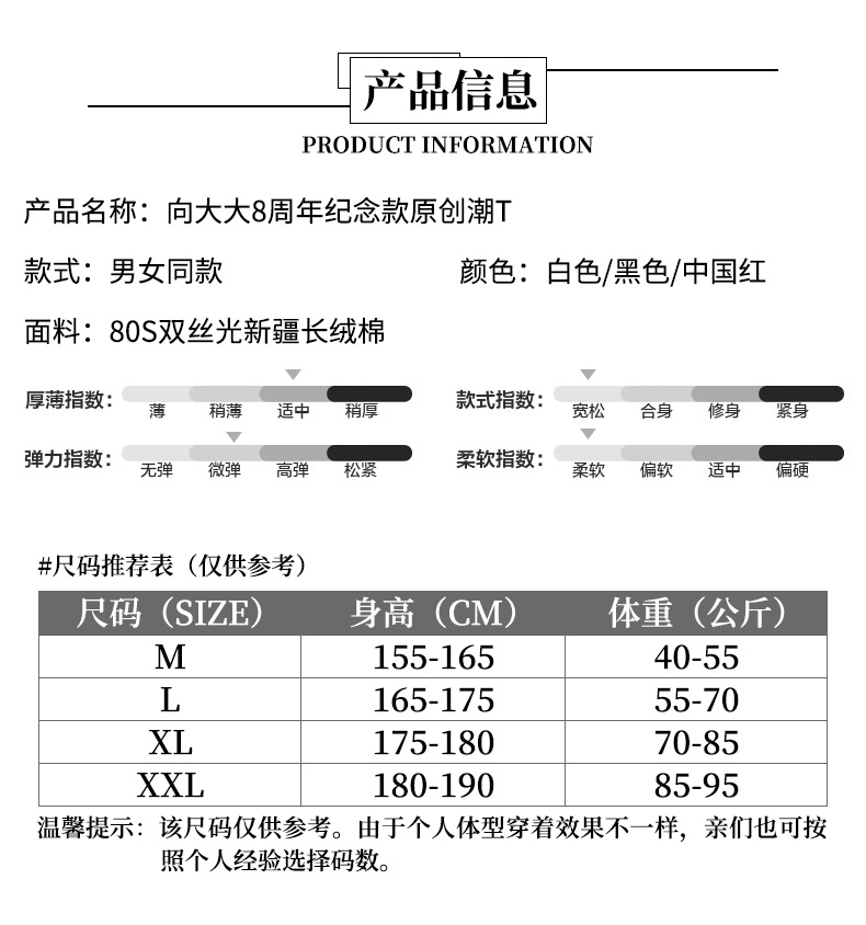 【2件装】向总李总原创设计,向大大8周年定制款80支新疆长绒棉T桖,世界顶级品质,永恒经典款