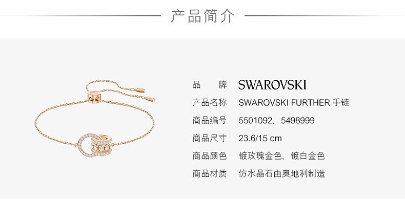 【100%正品保障】施华洛世奇爱意永恒系列手镯手链 环环相扣手链(玫瑰金) 5501092