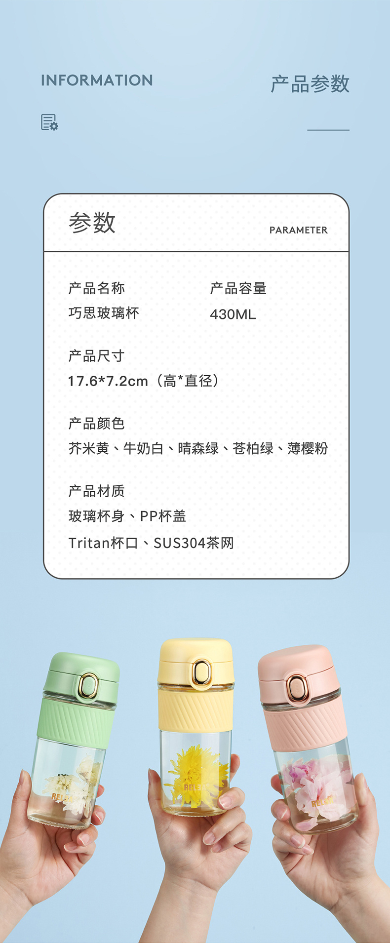 巧思随手玻璃杯430ML 物生物