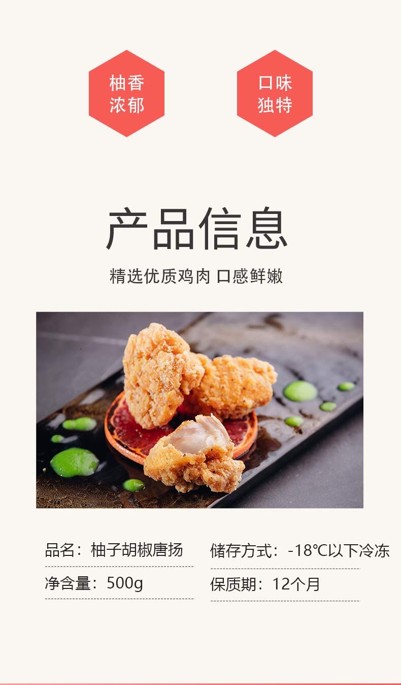 【3包/组,柚滋柚味鸡块】与传统唐扬相比多了份柚子的清香,口味独特,口感增加了层次,酥脆爽口,肉质鲜嫩,美味多汁,好吃不腻(500g/包*3)