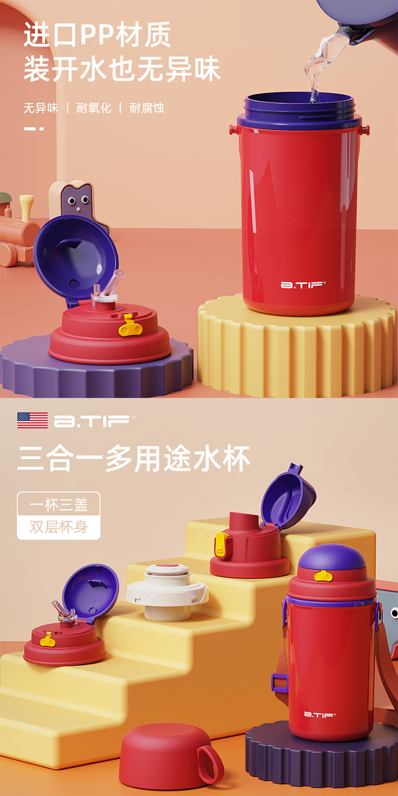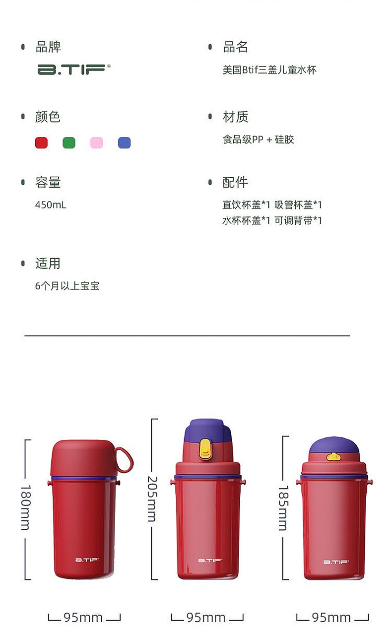 【一个杯子三种用法】三种杯盖,适合各个年龄段宝宝,可爱活力的色彩,让宝宝爱上喝水,食品级高端材质可装开水