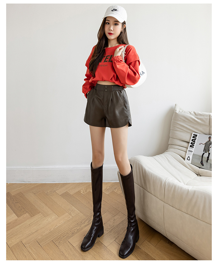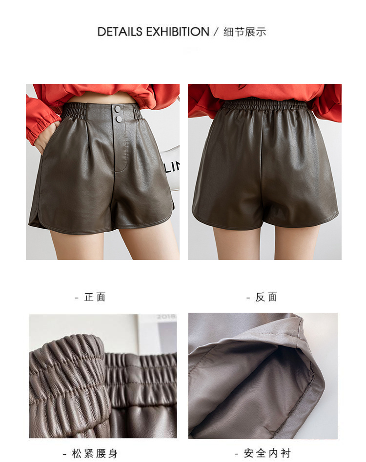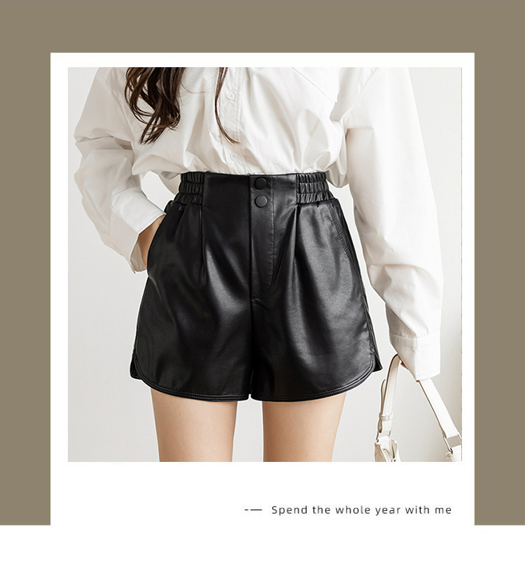 【1件装】高定女士胶原蛋白扣子款短皮裤
