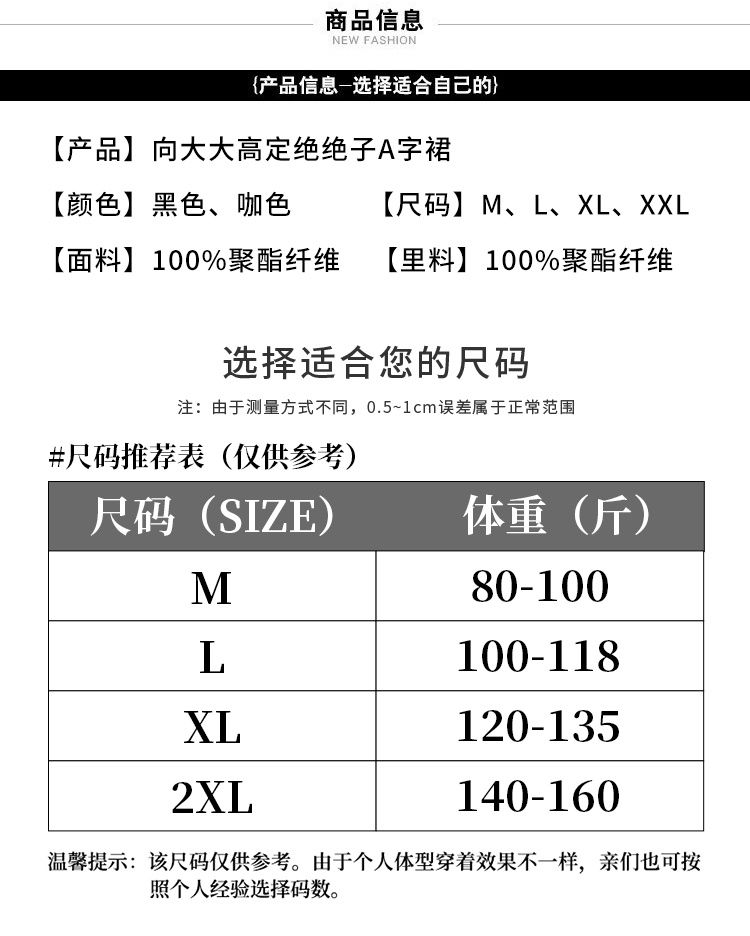 【2条装,绝瘦A字裙+绝绝子A字裙】 A款黑色1件+B款咖色1件/XL