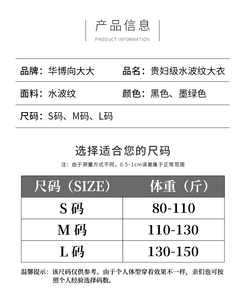 【1件装,贵妇级水波纹大衣】 黑色/S(80-110斤)