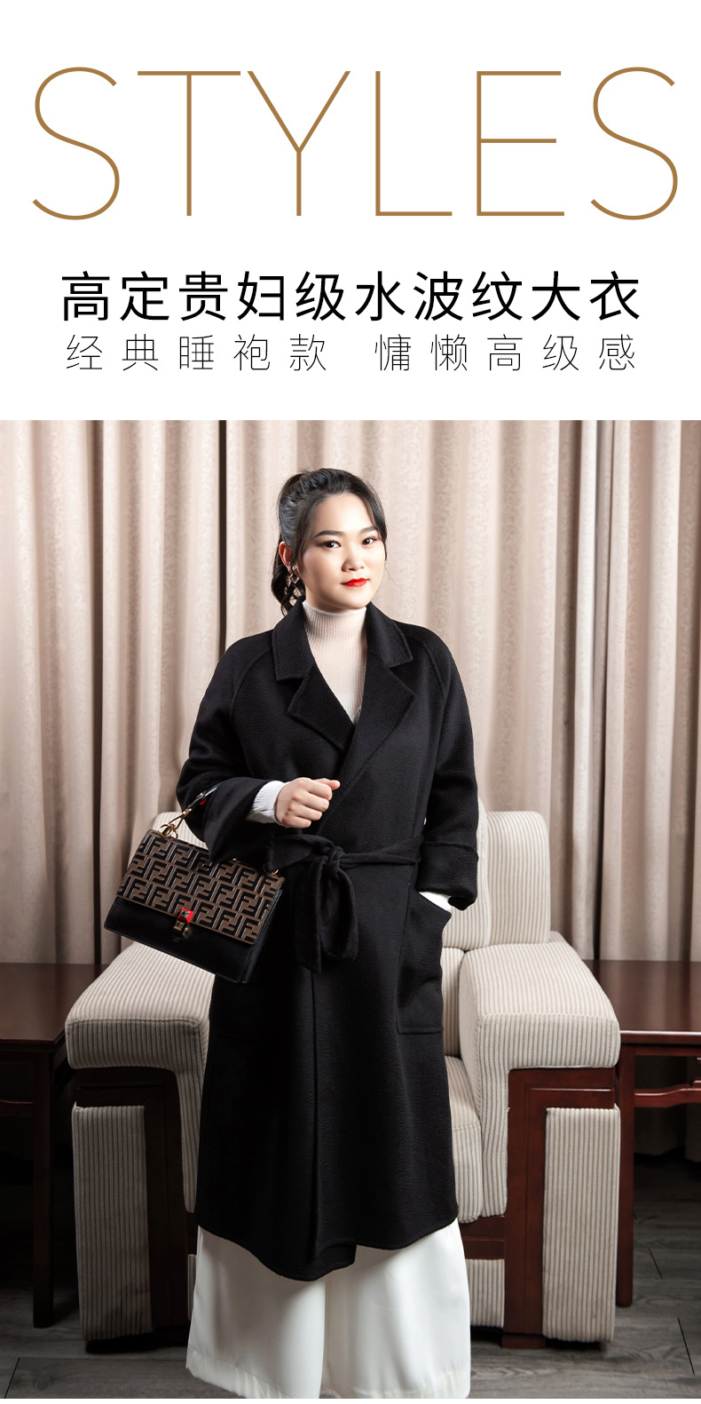 【2件装,贵妇级水波纹大衣】 黑色 2件装/L(130-160斤)
