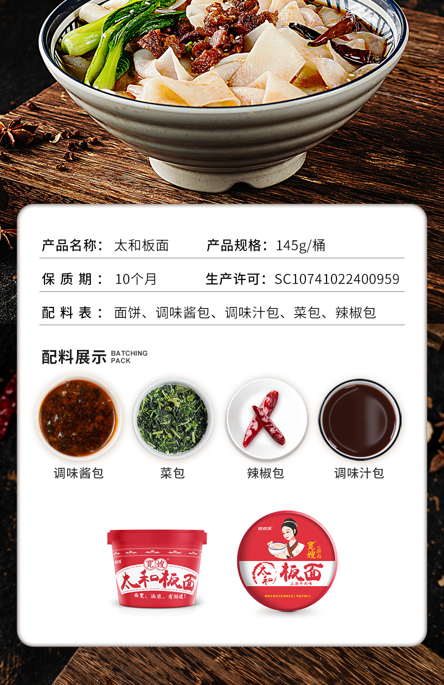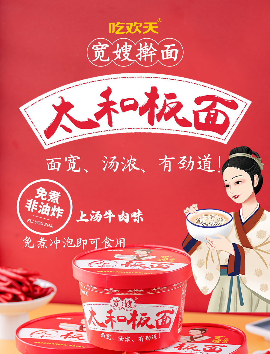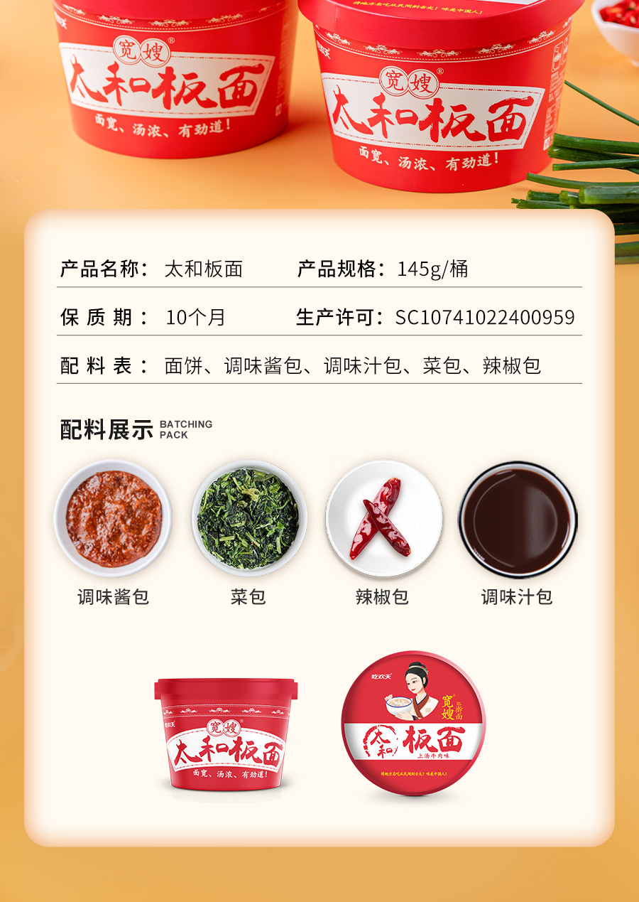 【8桶,太和非遗板面】安徽10大地标美食之一,多重调配,香而不腻,还原板面地方特色口味,免煮冲泡5分钟,搅拌均匀即可食用(145g/桶)