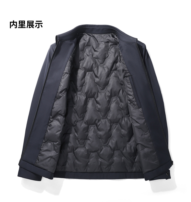 【九牧王旗下艾夫杰尼羽绒服】九牧王32年专业做男装,品质有保障,绒朵大、羽梗小、18.1cm/g高蓬松的90白鸭绒填充,高织面料,有效防风,多次机洗不变形(C1964)