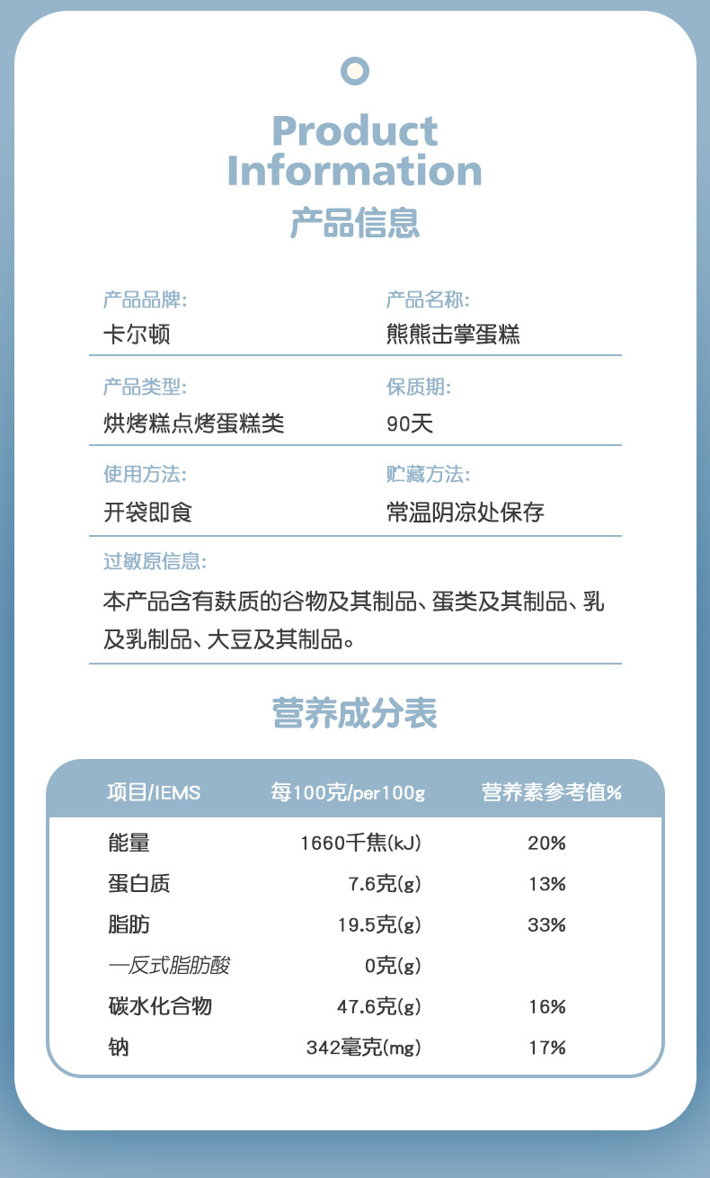 熊熊击掌蛋糕【380g】