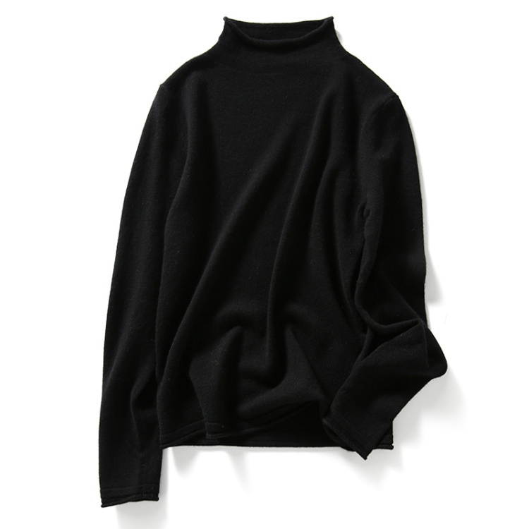 【大牌同厂】法式半高领打底衫,独特的卷边领,羊毛针织混纺,软糯亲肤,薄而不透,吸湿排汗,早春初秋单穿完全没问题 黑色/XL