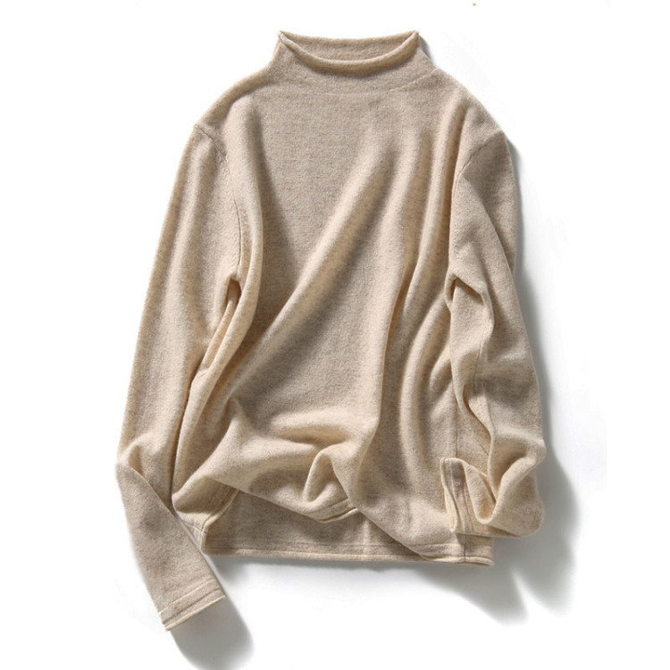 【大牌同厂】法式半高领打底衫,独特的卷边领,羊毛针织混纺,软糯亲肤,薄而不透,吸湿排汗,早春初秋单穿完全没问题 米色/M