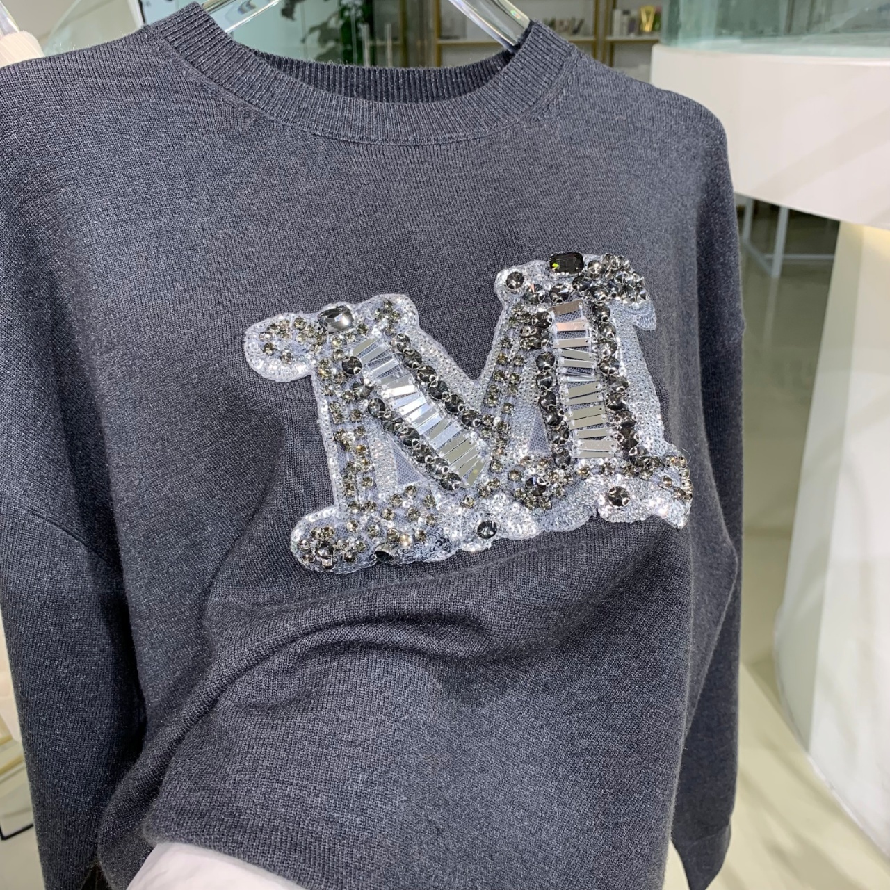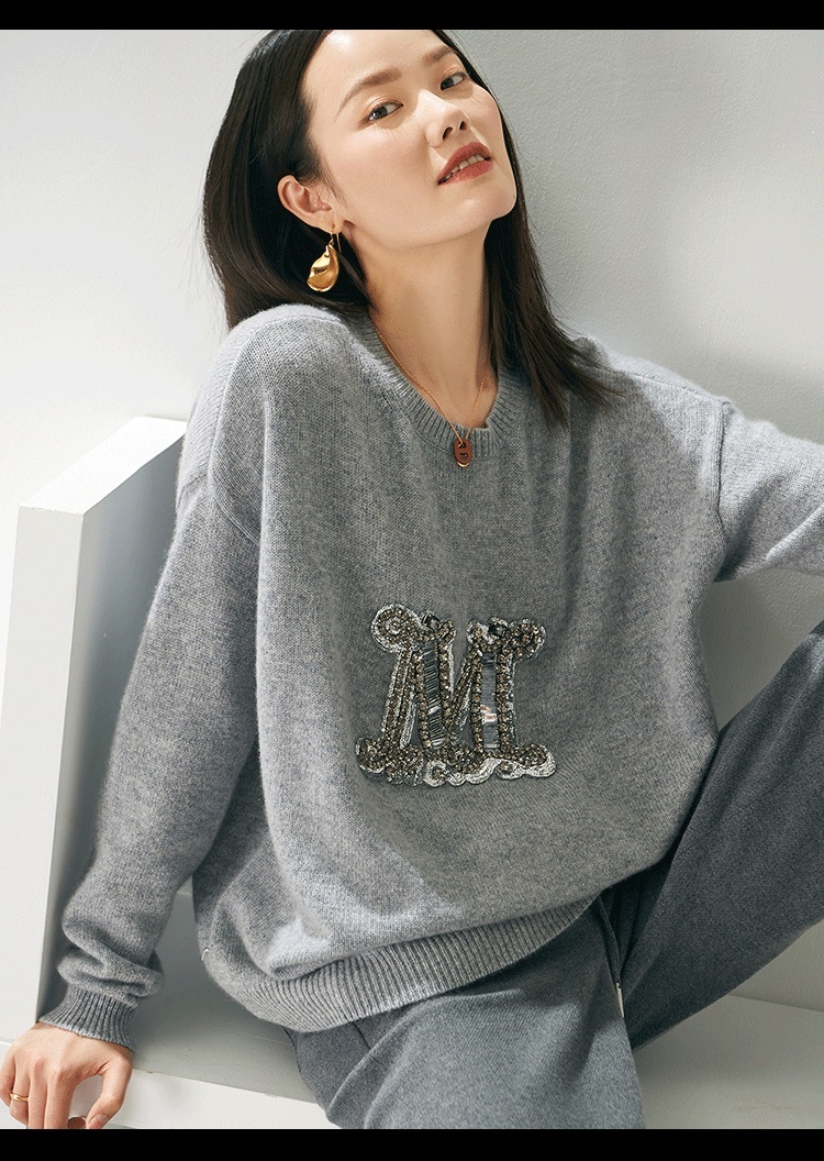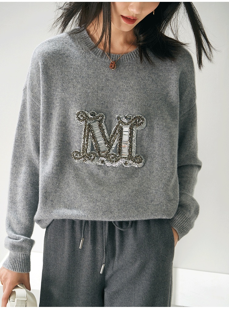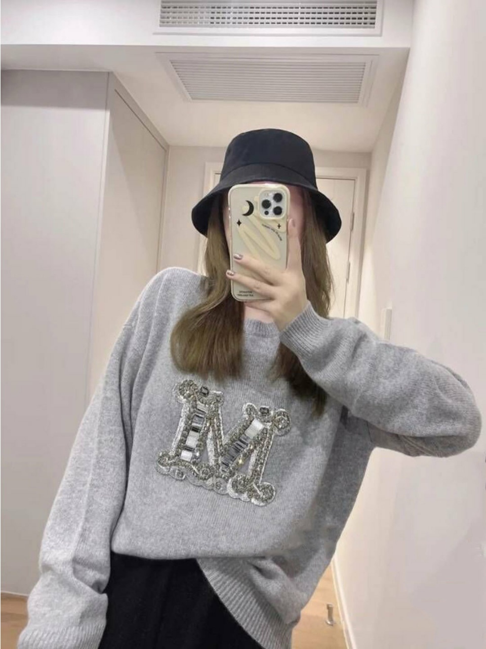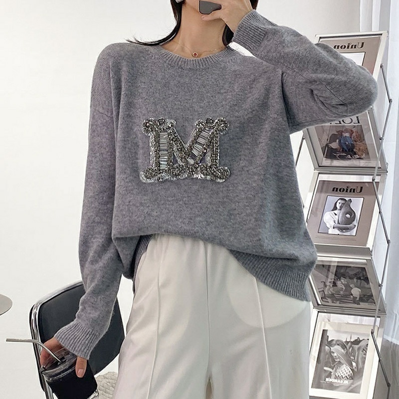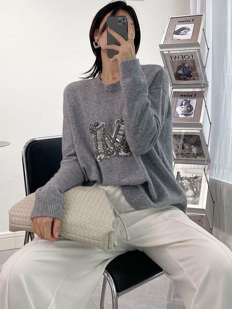 【重工艺闪钻羊毛衫】5%羊毛混纺纱线,舒适不扎肉,厚实保暖,不易起球,手工车珠,稳固不易掉 灰色/均码 85-130斤