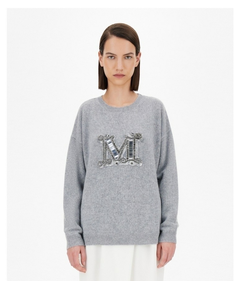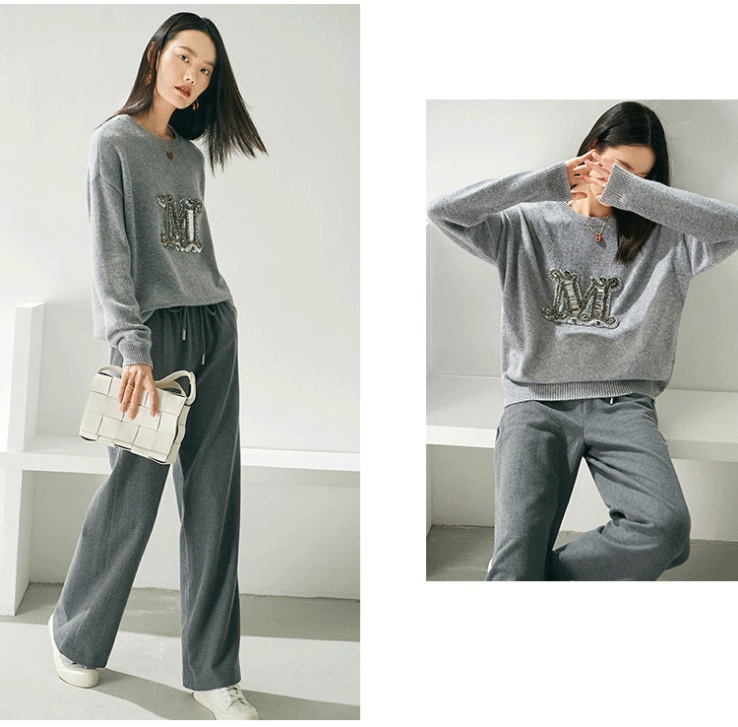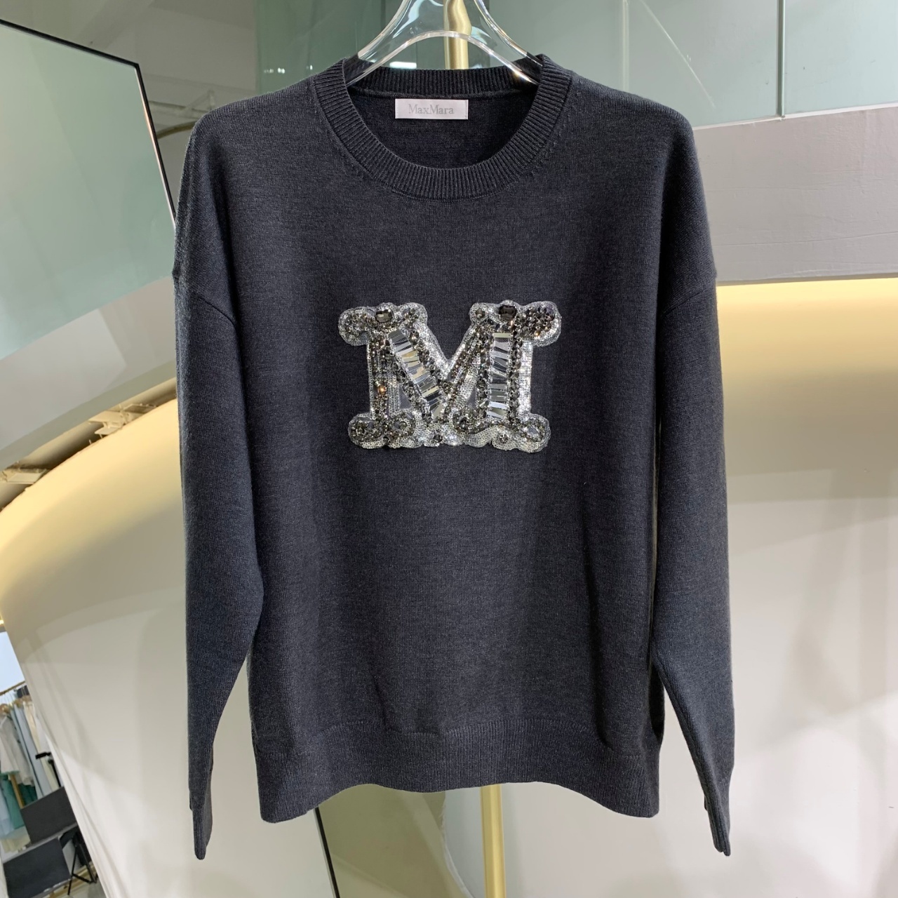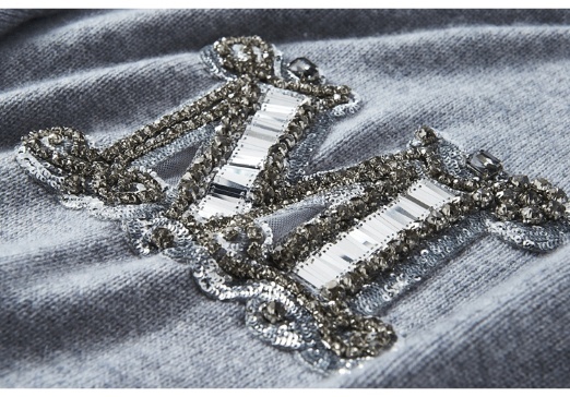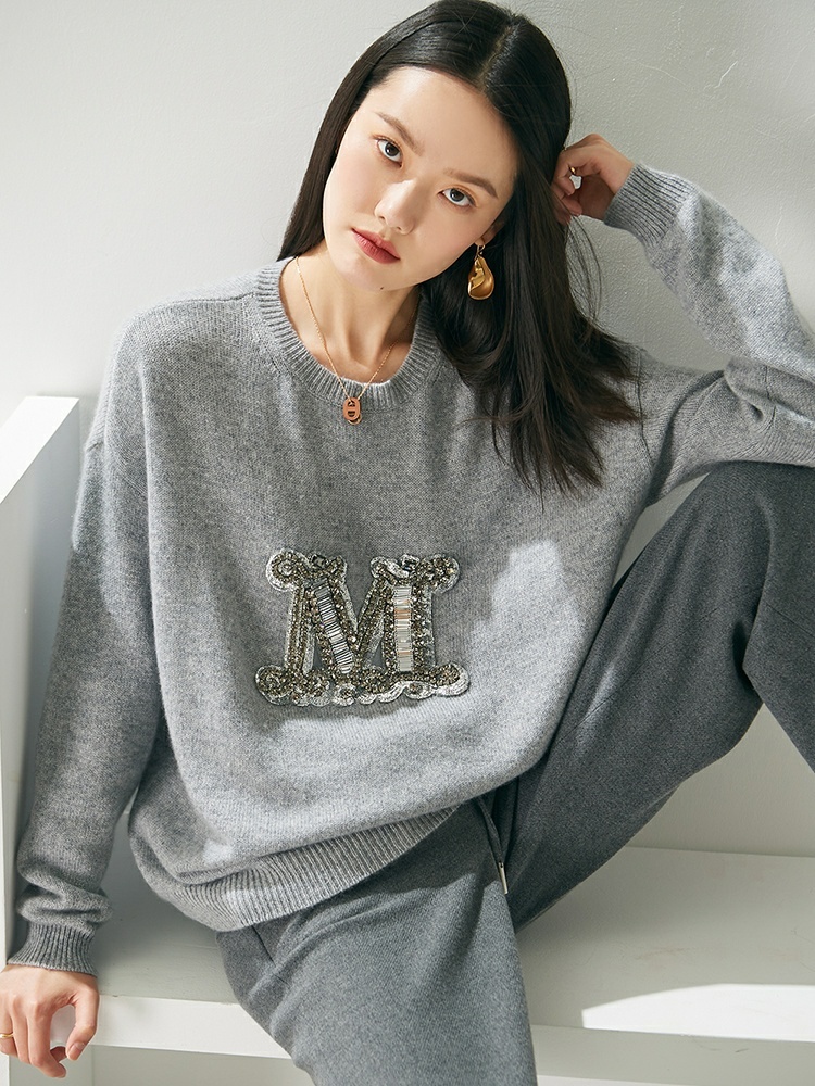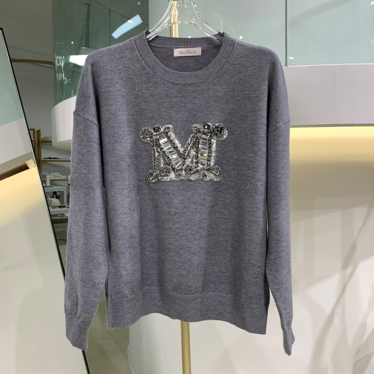 【重工艺闪钻羊毛衫】5%羊毛混纺纱线,舒适不扎肉,厚实保暖,不易起球,手工车珠,稳固不易掉 灰色/均码 85-130斤