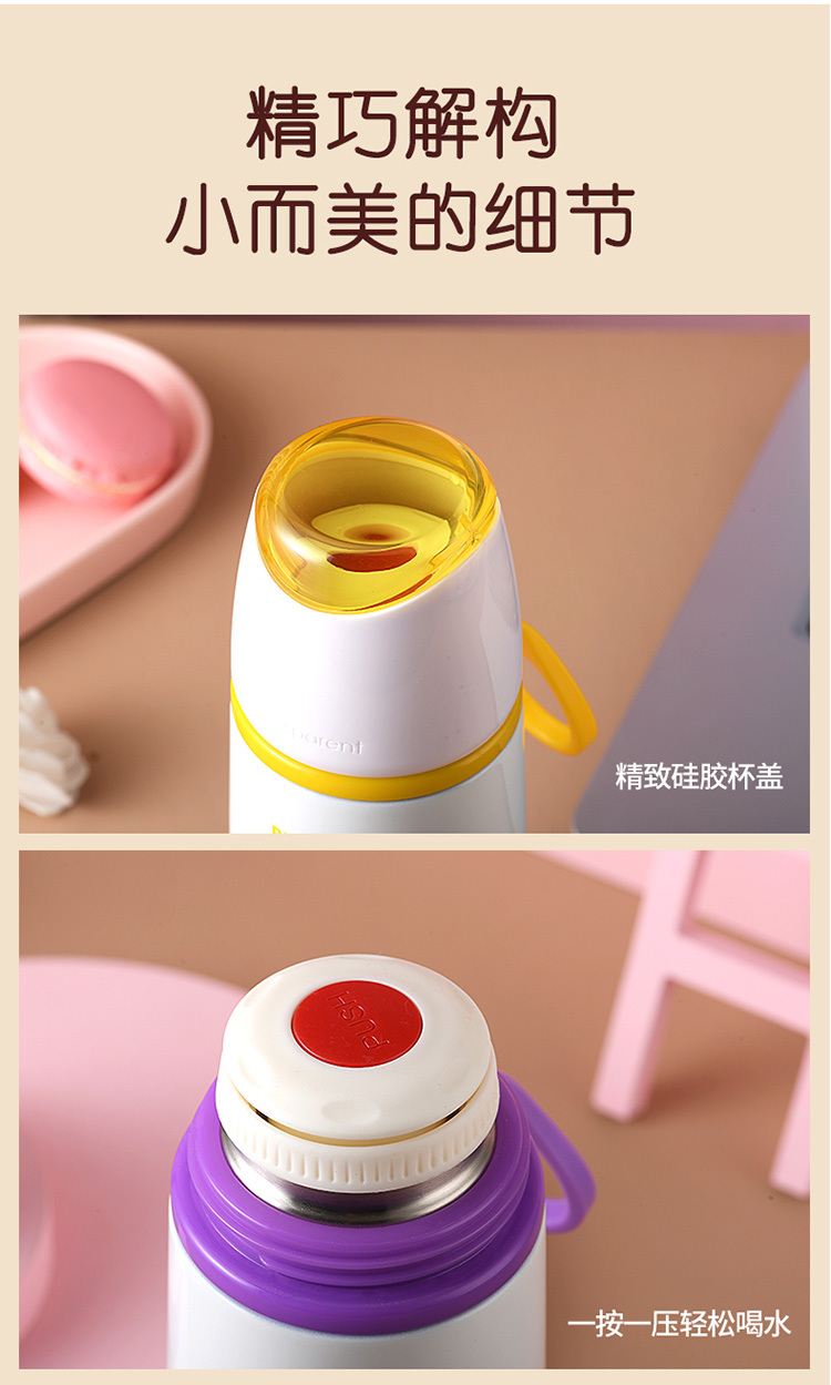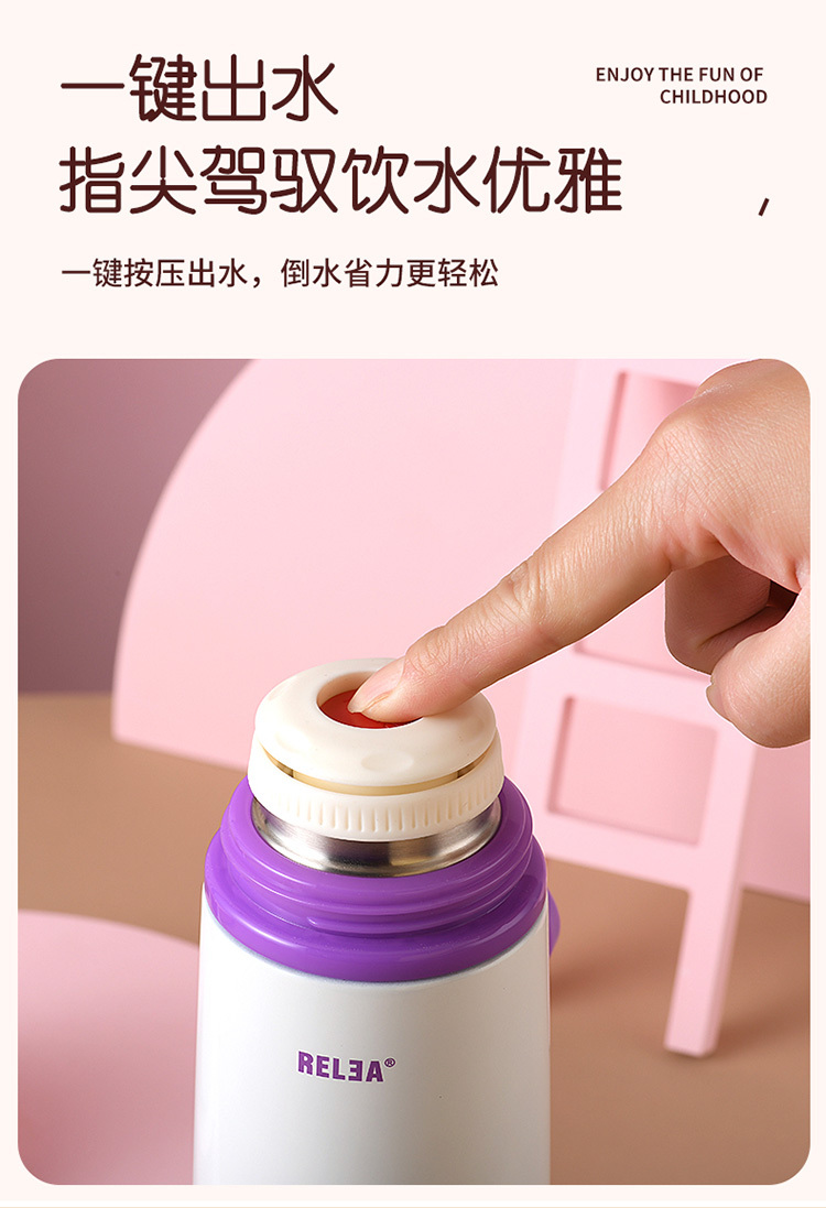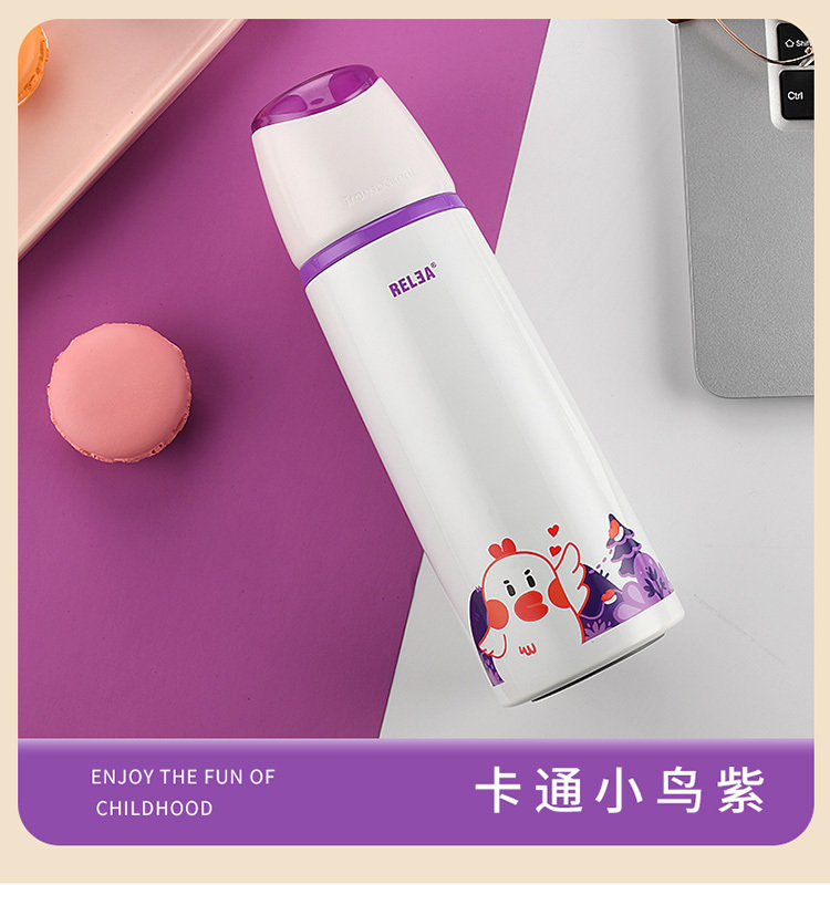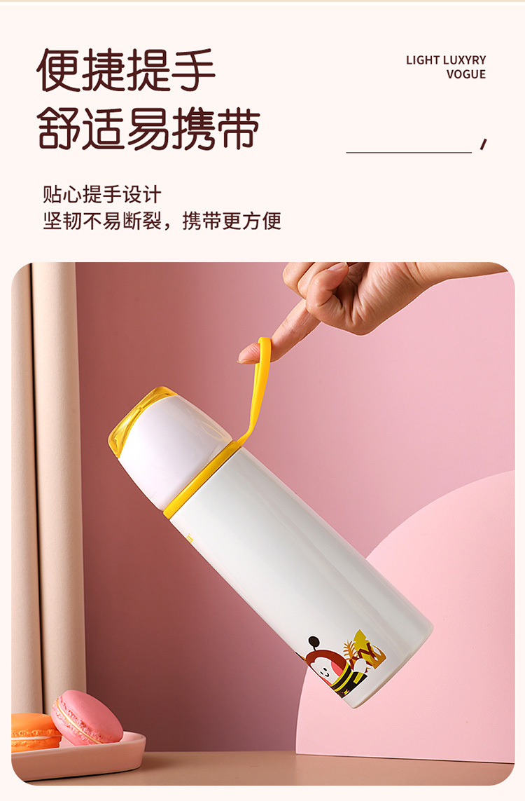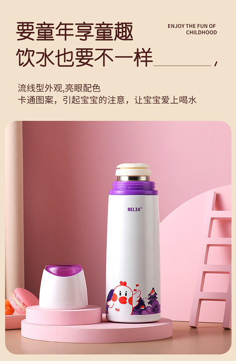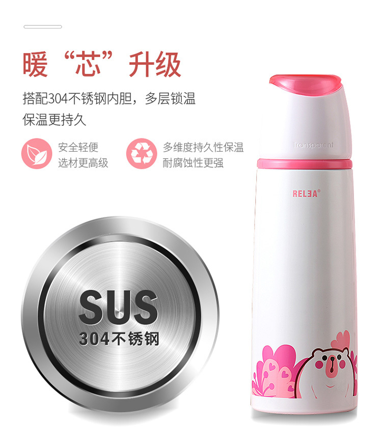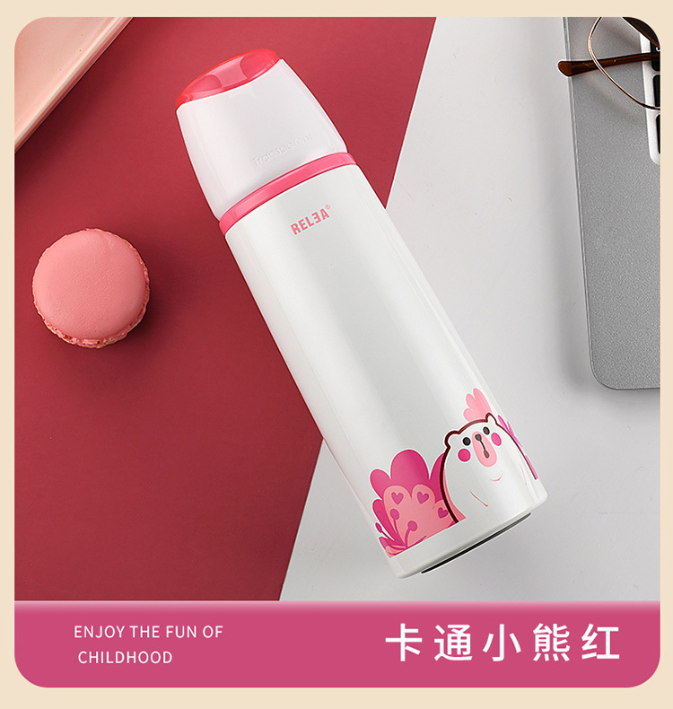 乐途儿童304不锈钢保温杯500ML 物生物 粉色