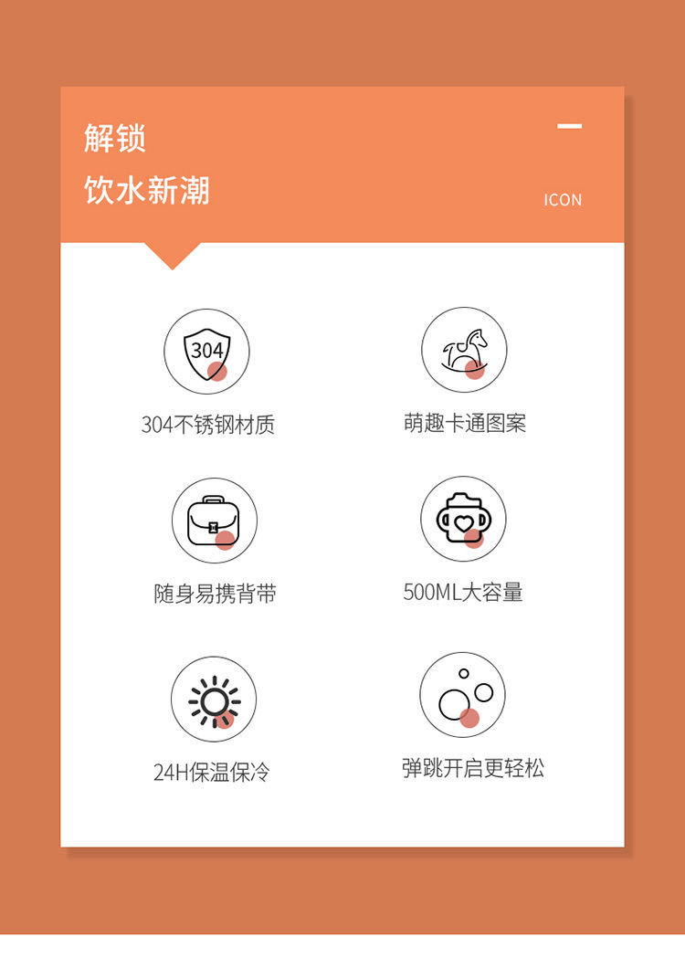 乐途儿童304不锈钢保温杯500ML 物生物