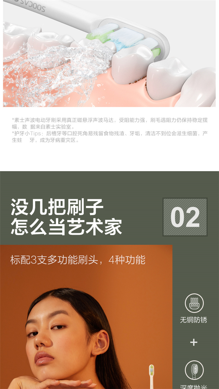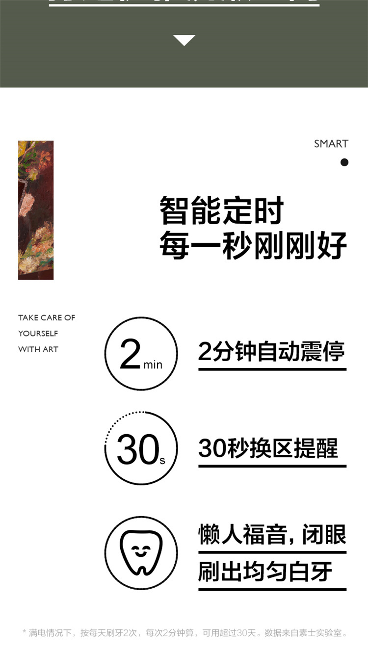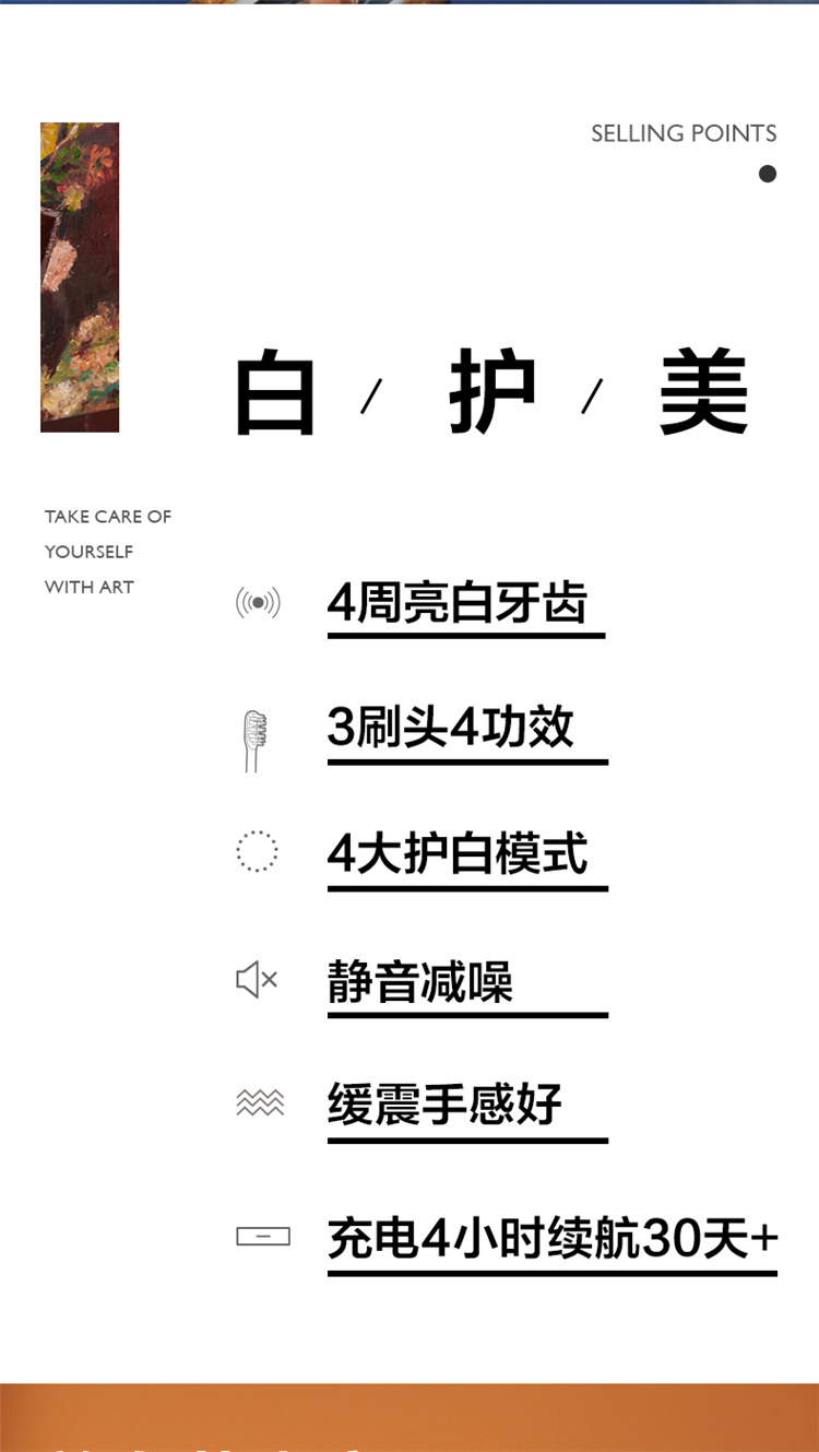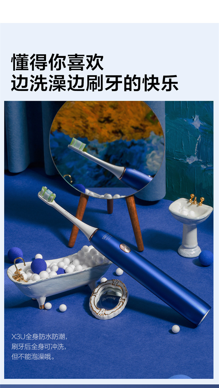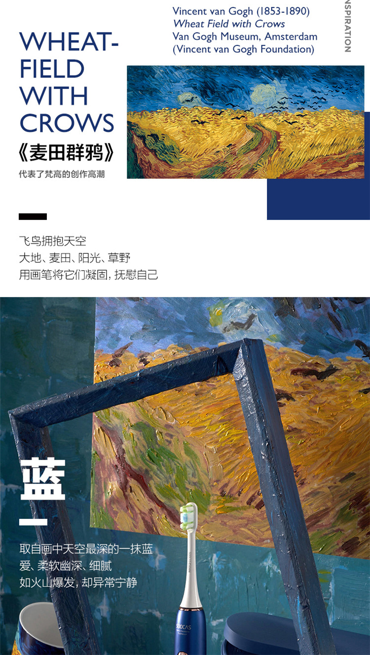 【4周高效美白牙齿】梵高定制联名款声波电动牙刷3种刷头,4种模式,无铜植毛工艺,39600次/分钟震动,手感好(X3U)