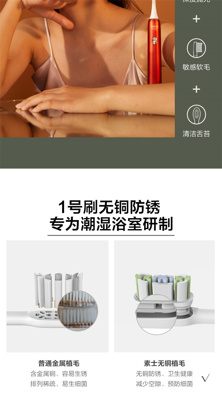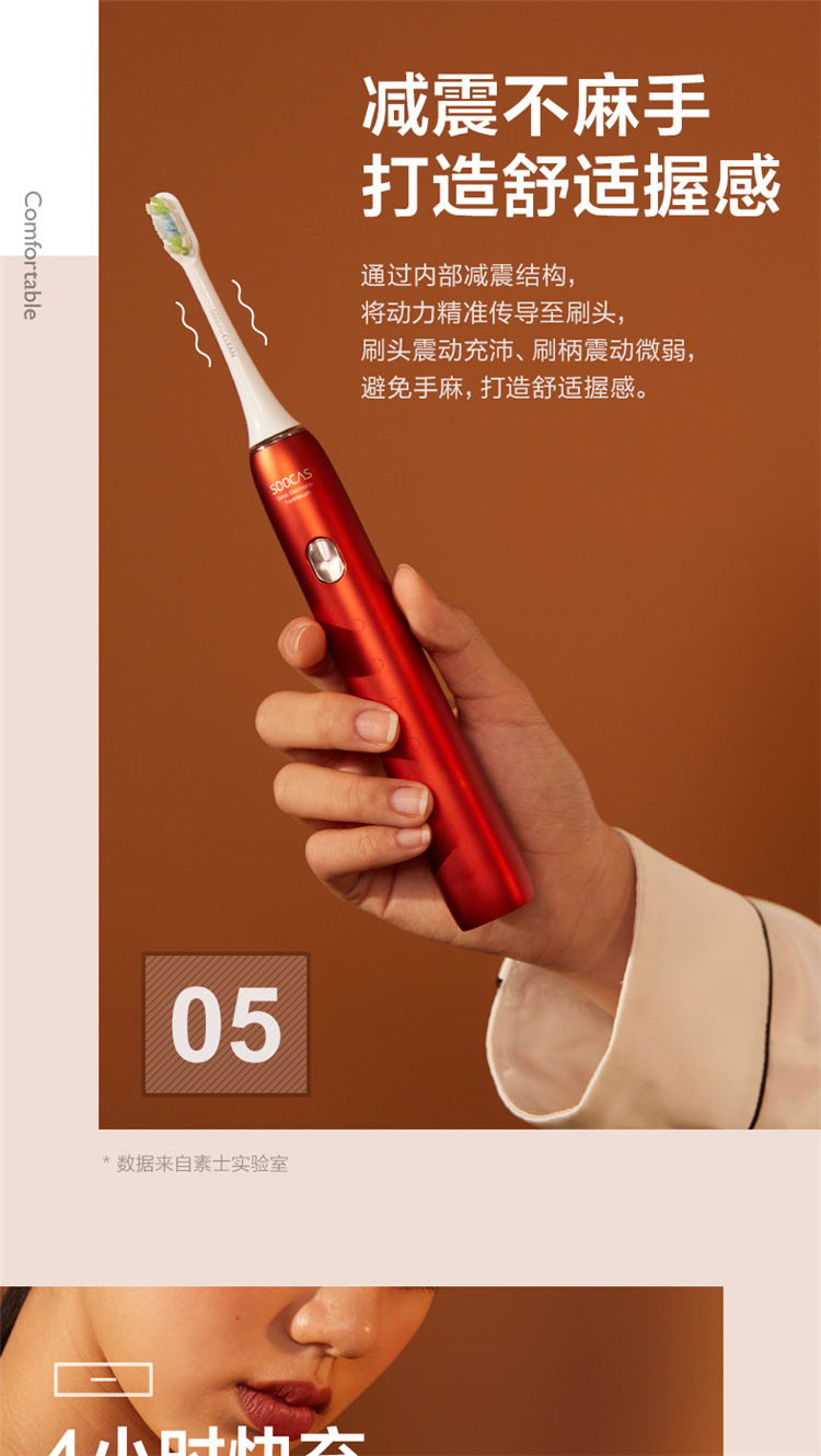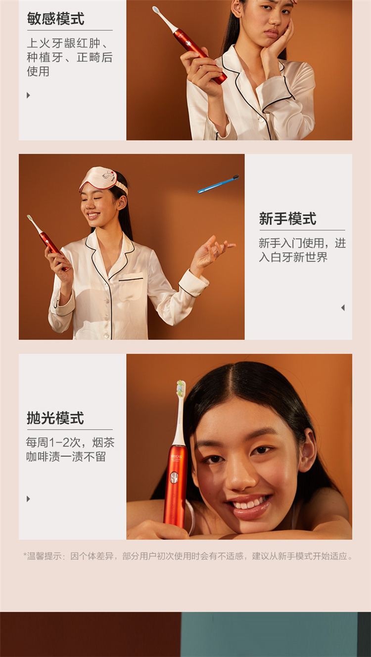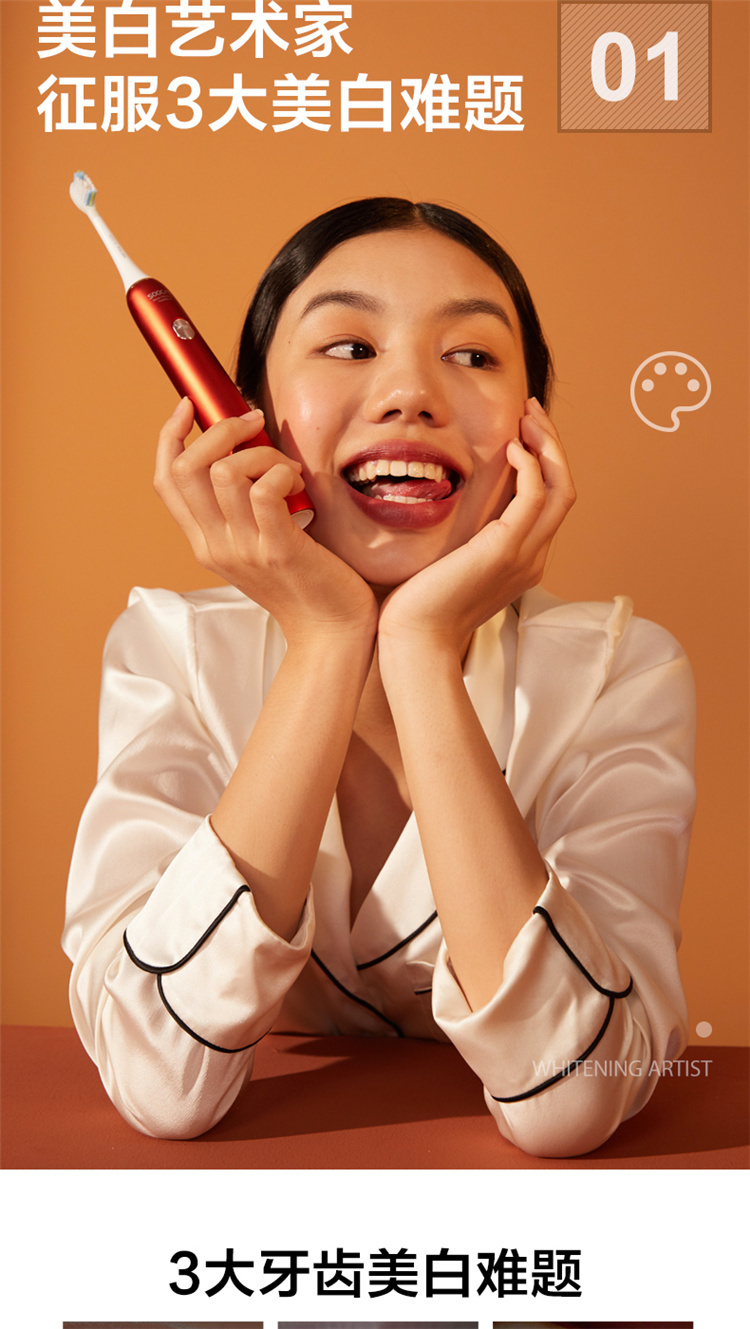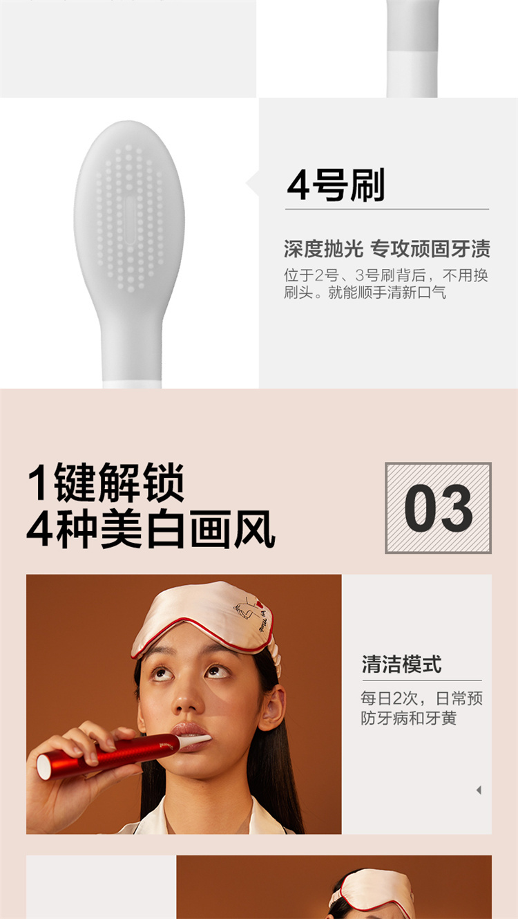 【4周高效美白牙齿】梵高定制联名款声波电动牙刷3种刷头,4种模式,无铜植毛工艺,39600次/分钟震动,手感好(X3U) 梵高红