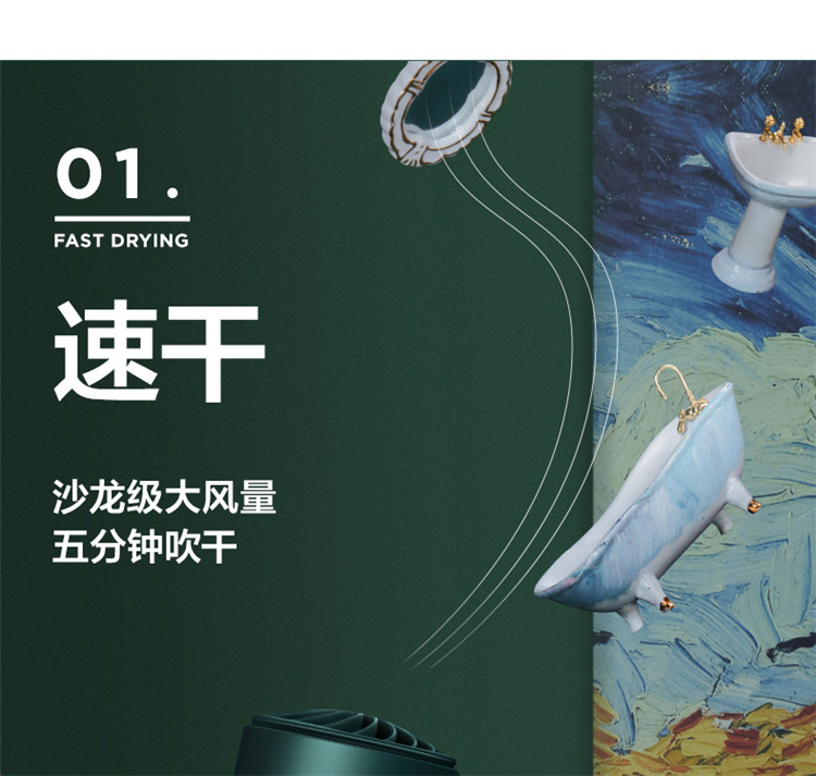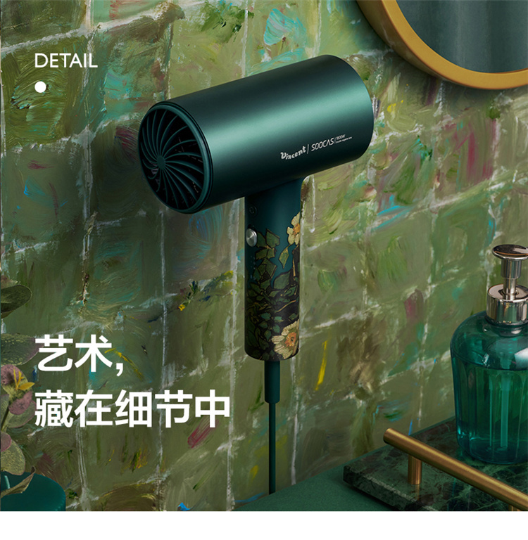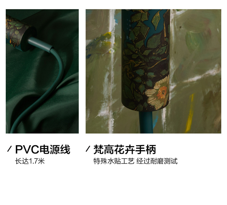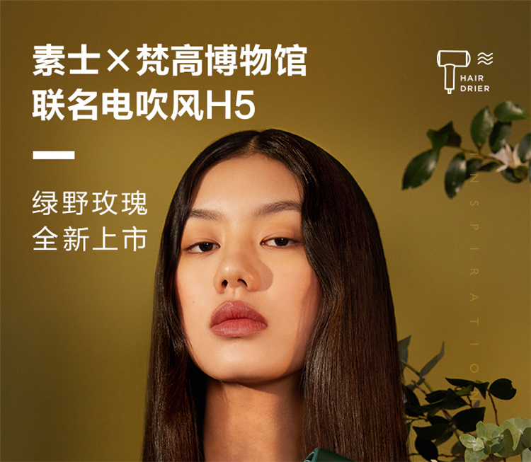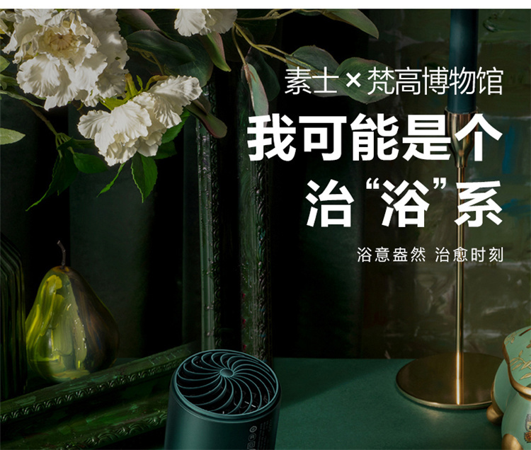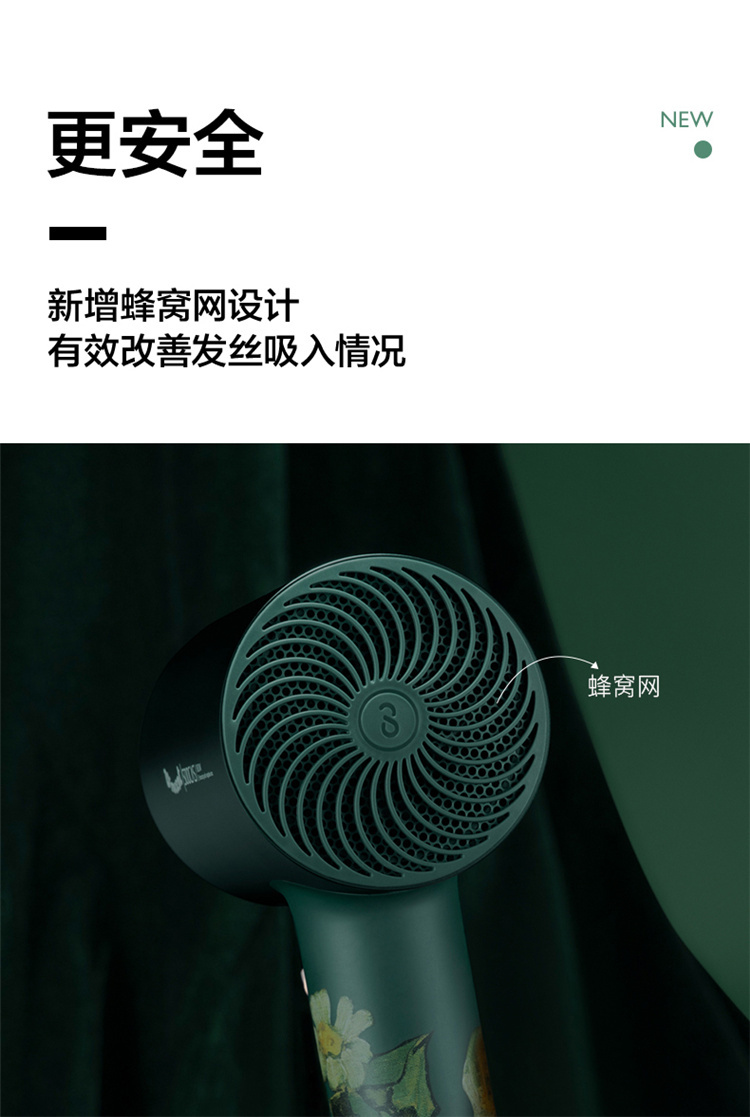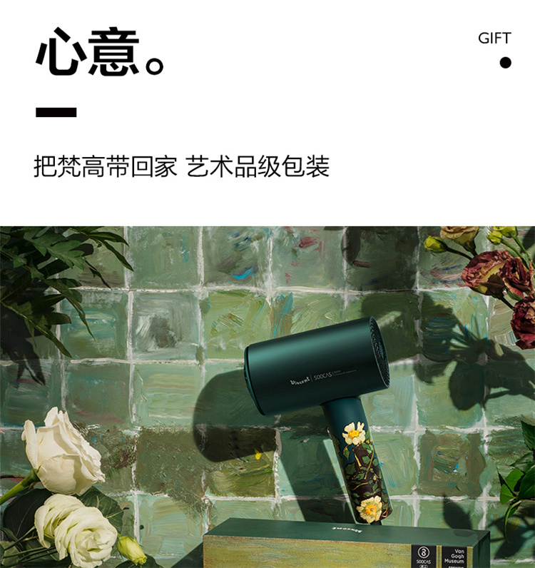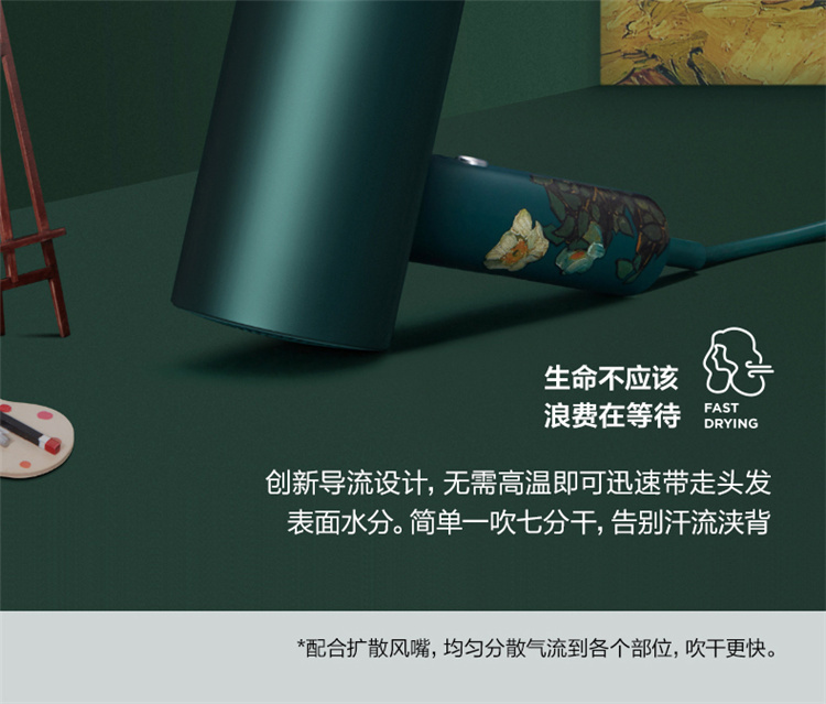 【短发2分钟速干】素士负离子速干电吹风,双通道输出3000万高浓度负离子,沙龙级大风量1800W快干,6大扇叶,2万转大马达,梵高联名款(H5) 梵高绿