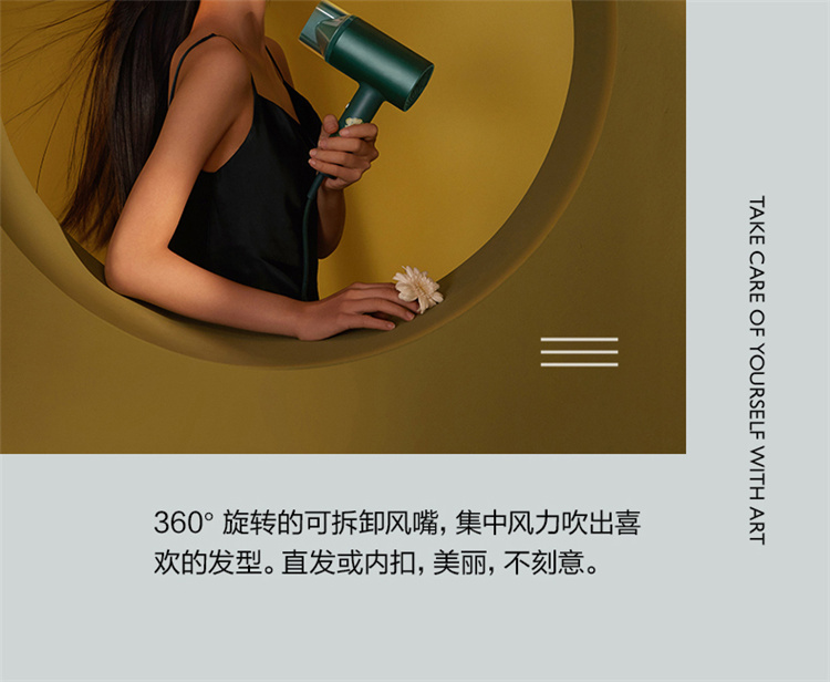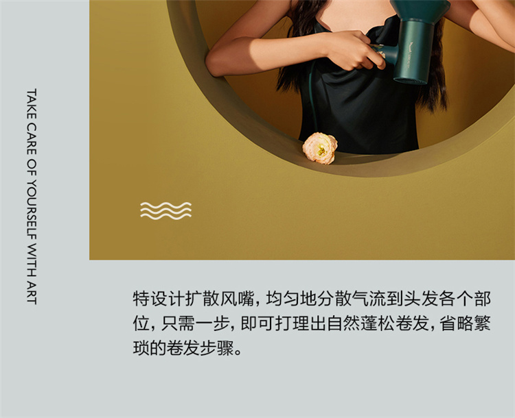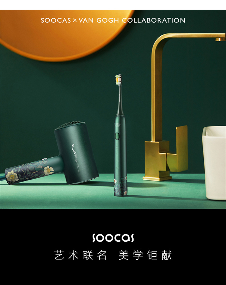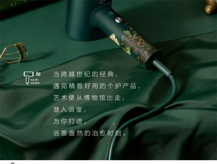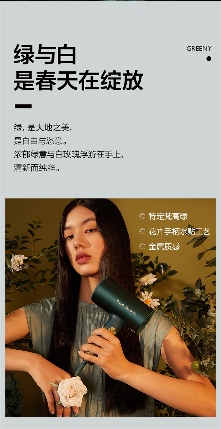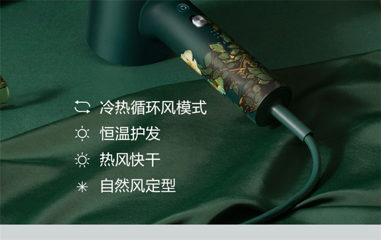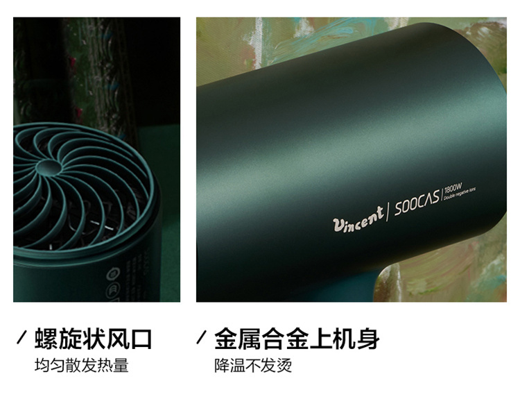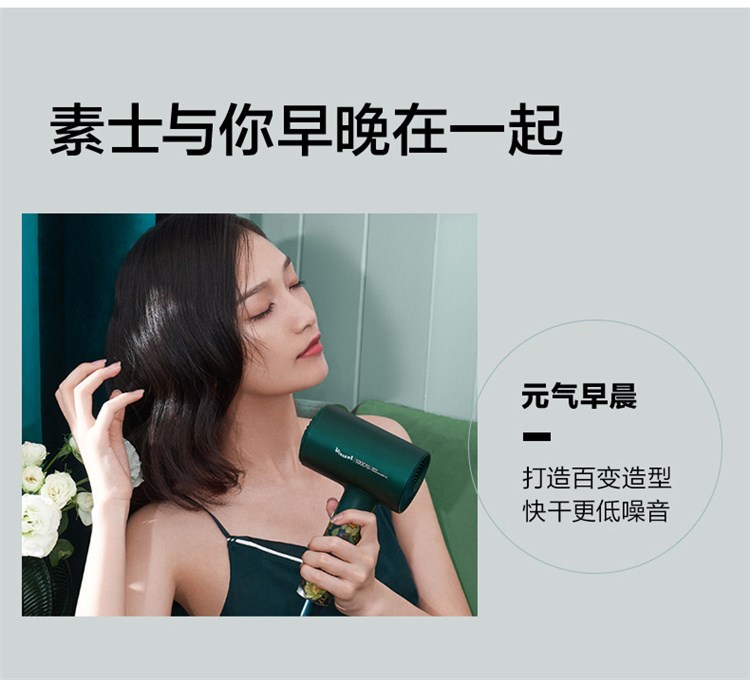 【短发2分钟速干】素士负离子速干电吹风,双通道输出3000万高浓度负离子,沙龙级大风量1800W快干,6大扇叶,2万转大马达,梵高联名款(H5) 梵高绿