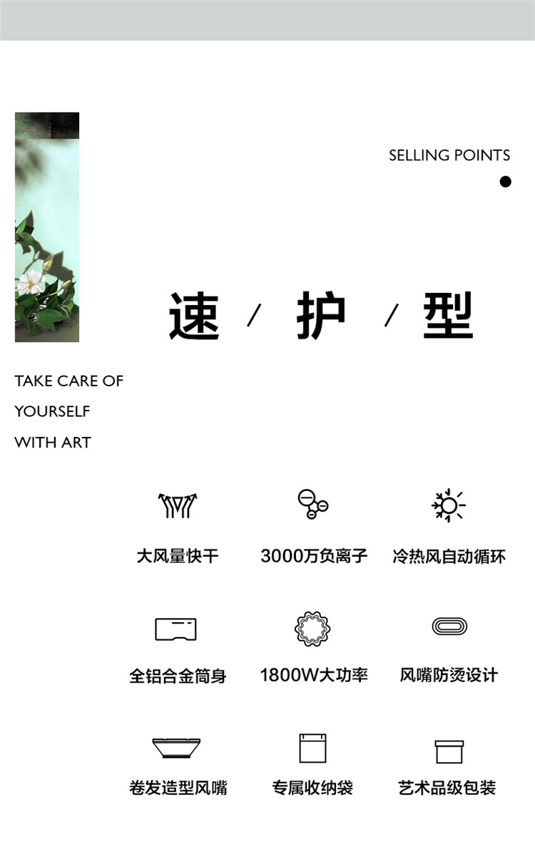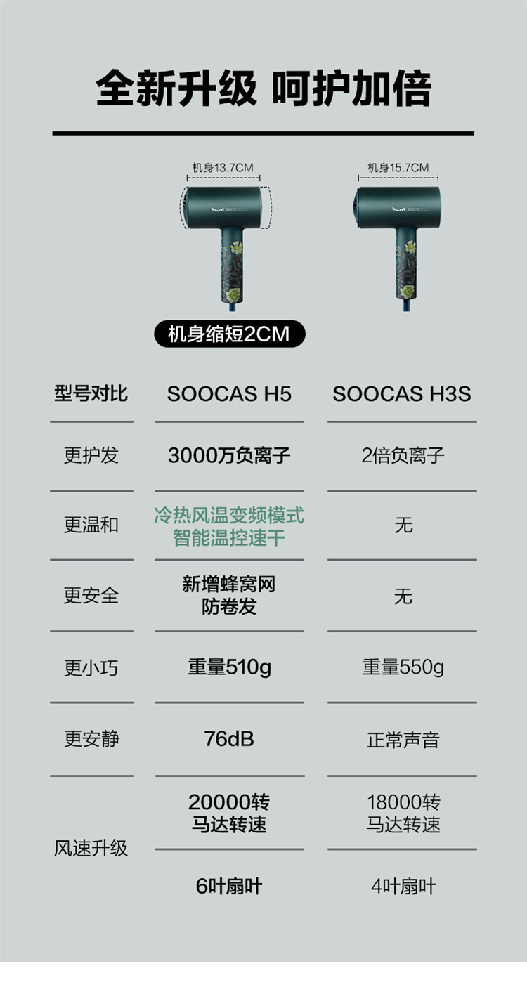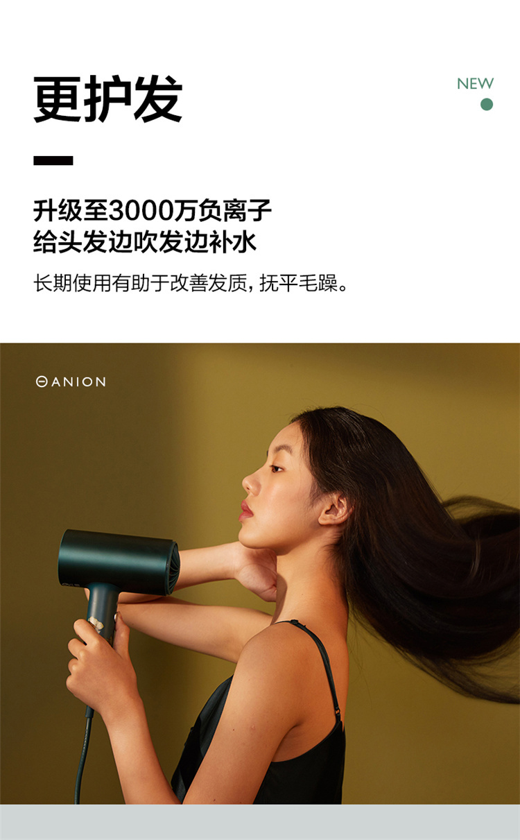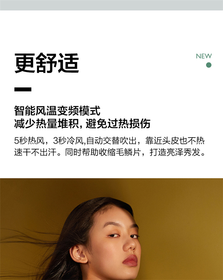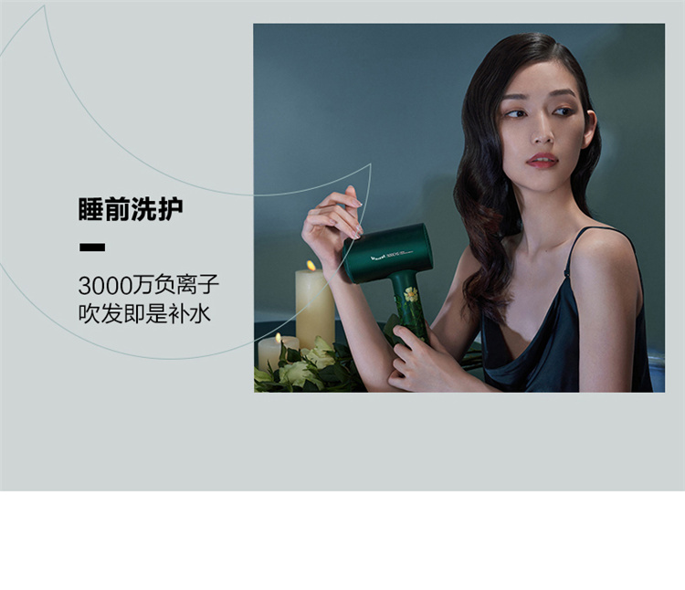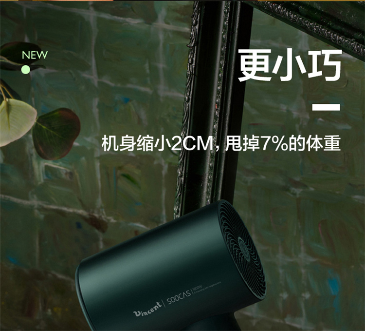 【短发2分钟速干】素士负离子速干电吹风,双通道输出3000万高浓度负离子,沙龙级大风量1800W快干,6大扇叶,2万转大马达,梵高联名款(H5) 梵高绿