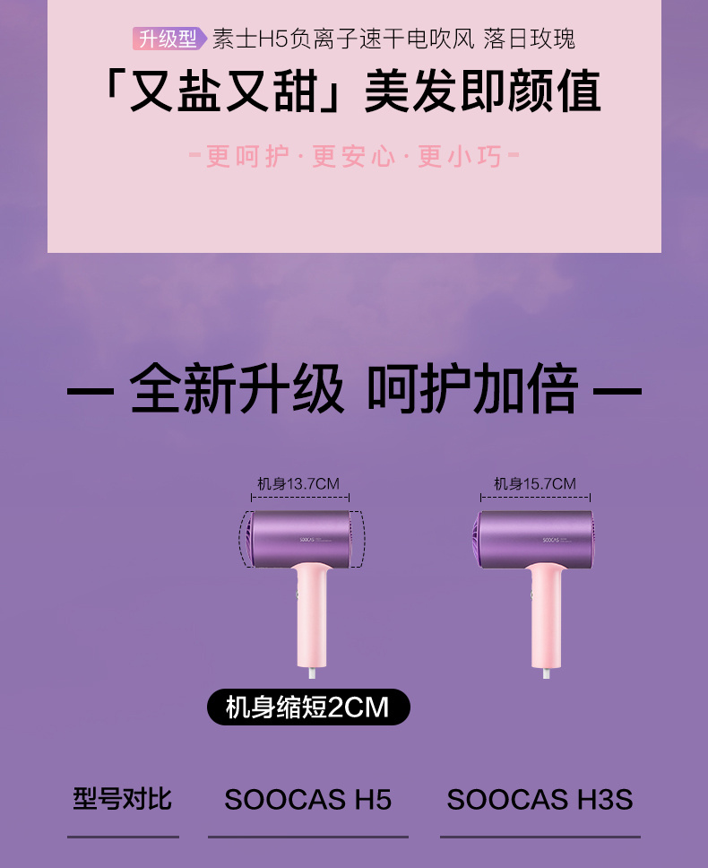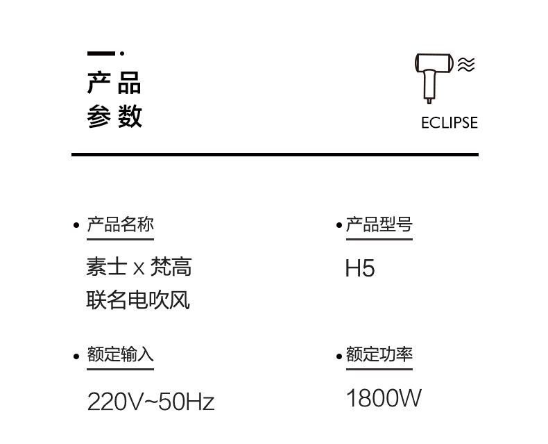 【短发2分钟速干】素士负离子速干电吹风,双通道输出3000万高浓度负离子,沙龙级大风量1800W快干,6大扇叶,2万转大马达,梵高联名款(H5)