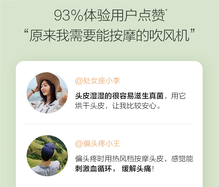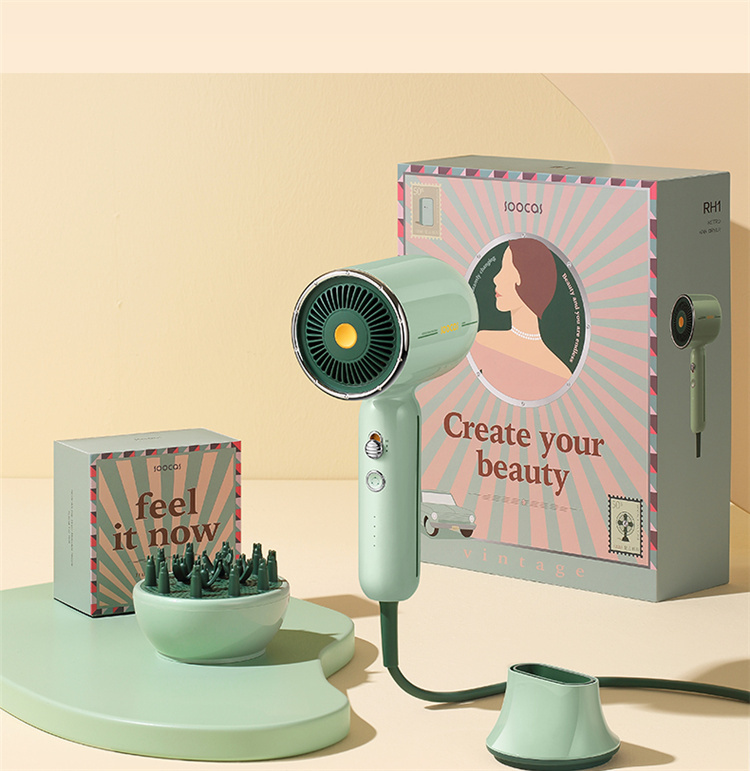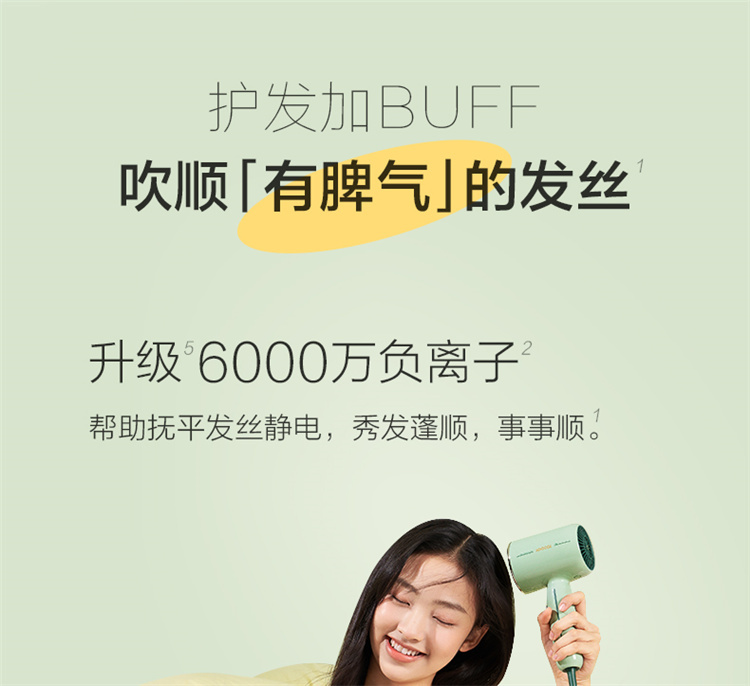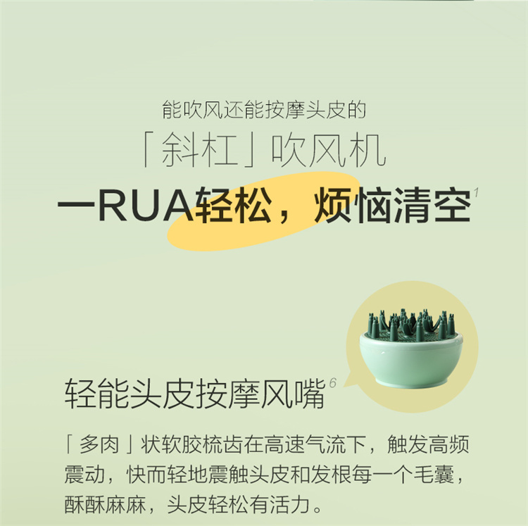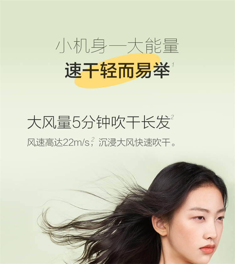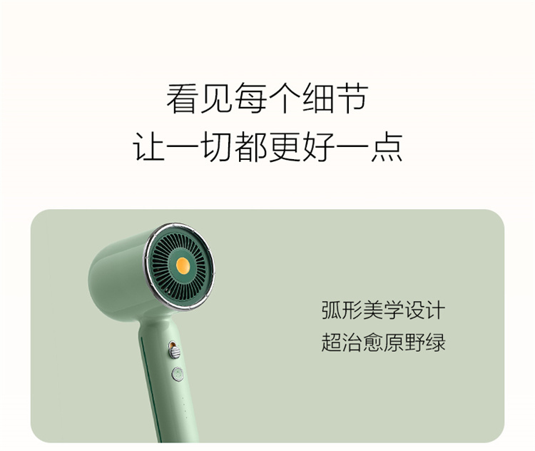 【升级6000万高浓度负离子】速干小摩筒吹风机,沙龙级大风量,智能冷热循环风,拒绝高温伤发,拒绝烤脸,超轻便大小,方便携带(RH1) 原野绿