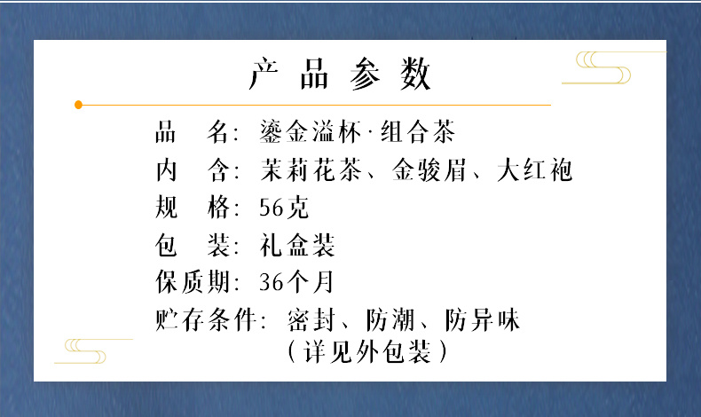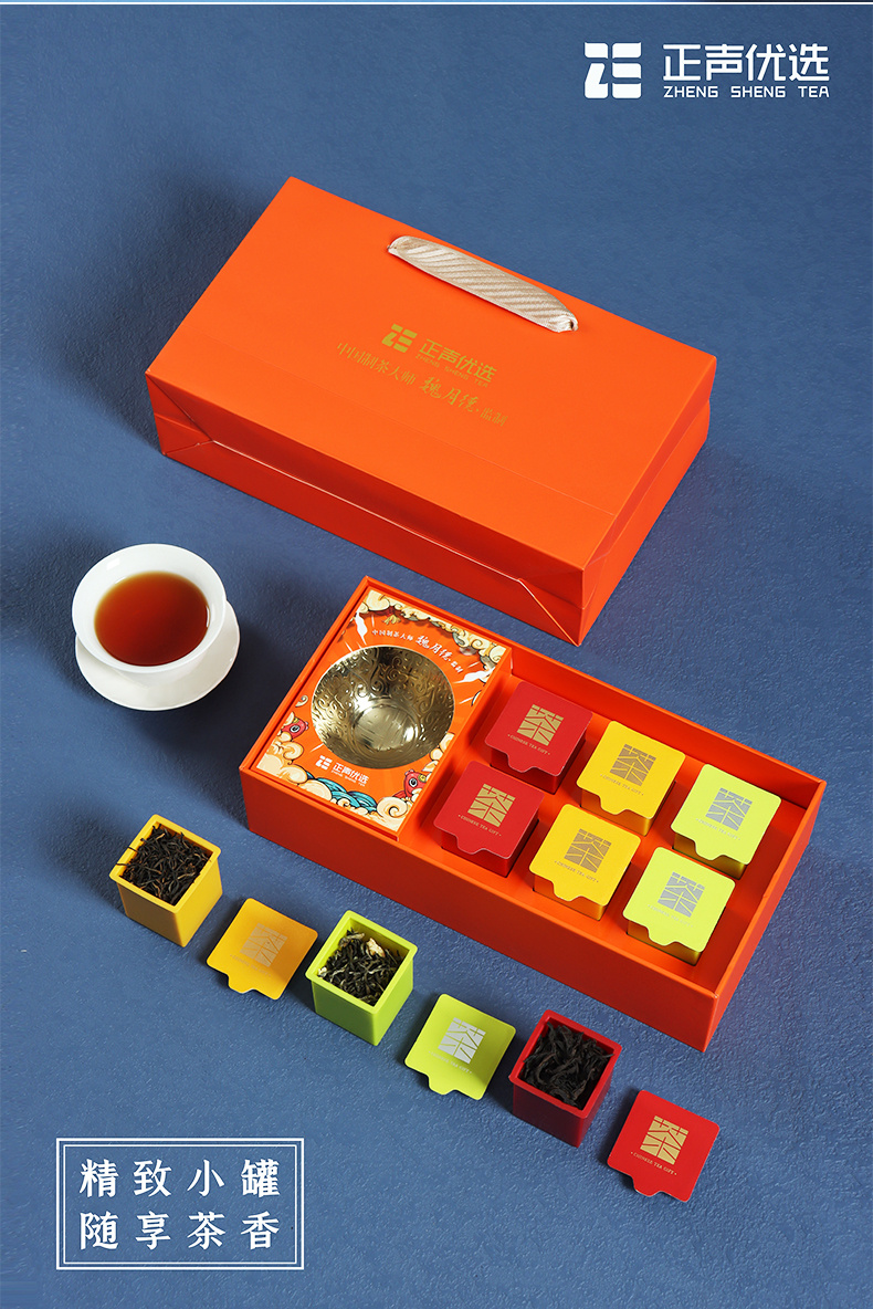 超值【中国制茶大师魏月德监制】鎏金溢杯礼盒,一个鎏金杯+6个小罐茶,3大茗茶(茉莉花茶、金骏眉、大红袍)德化手作鎏金杯福字+祥云,寓意美好(茶总56g)
