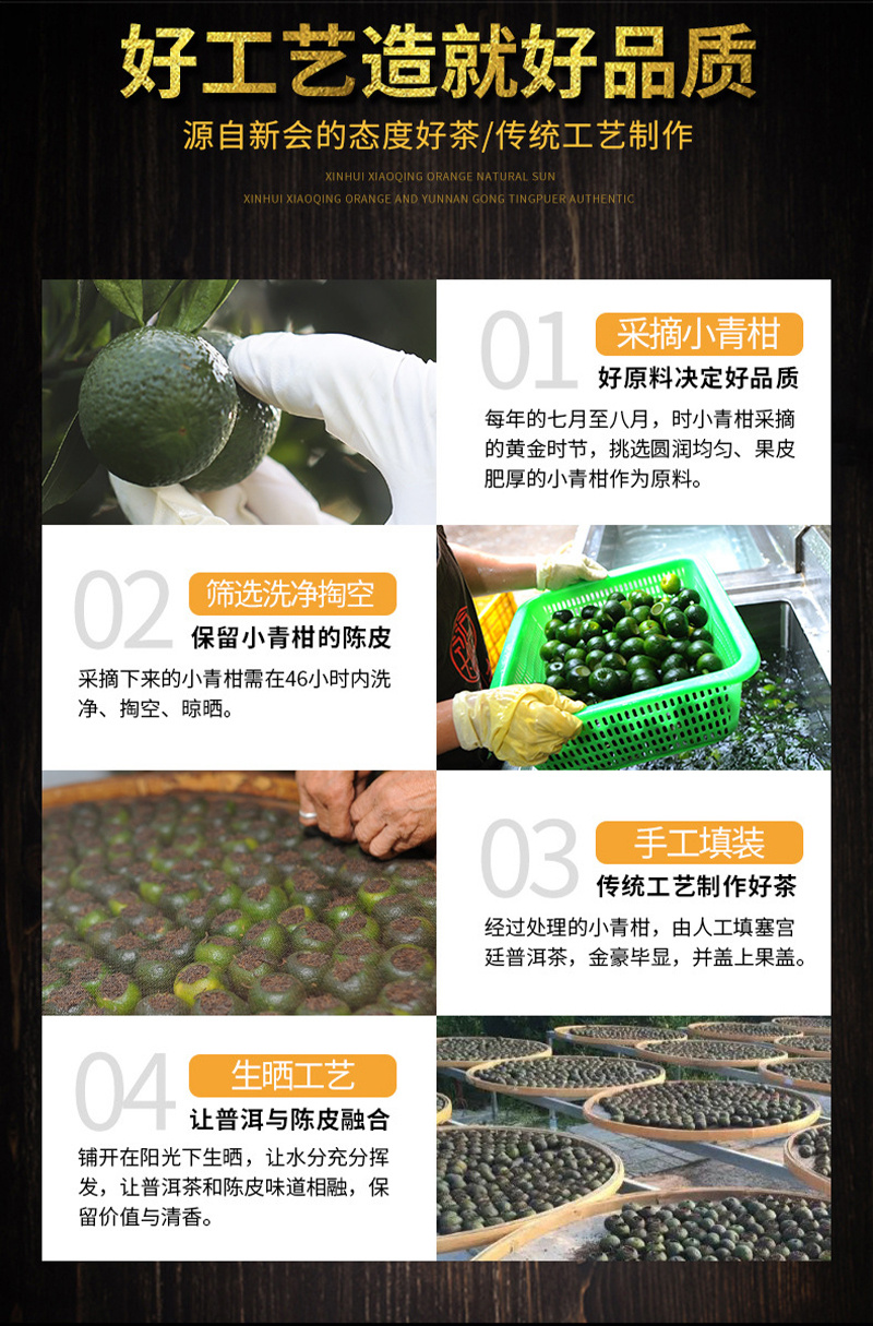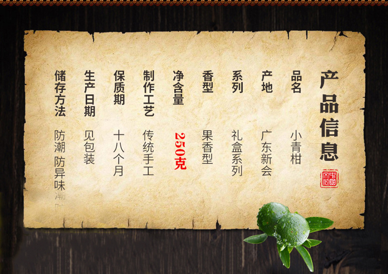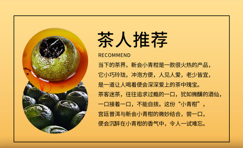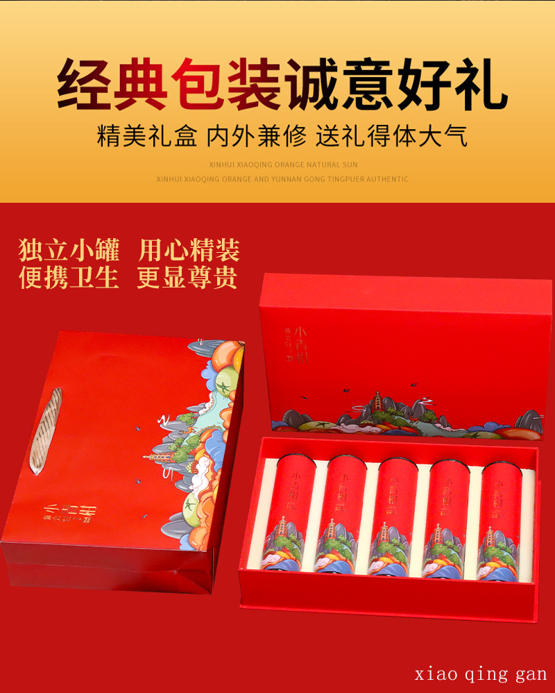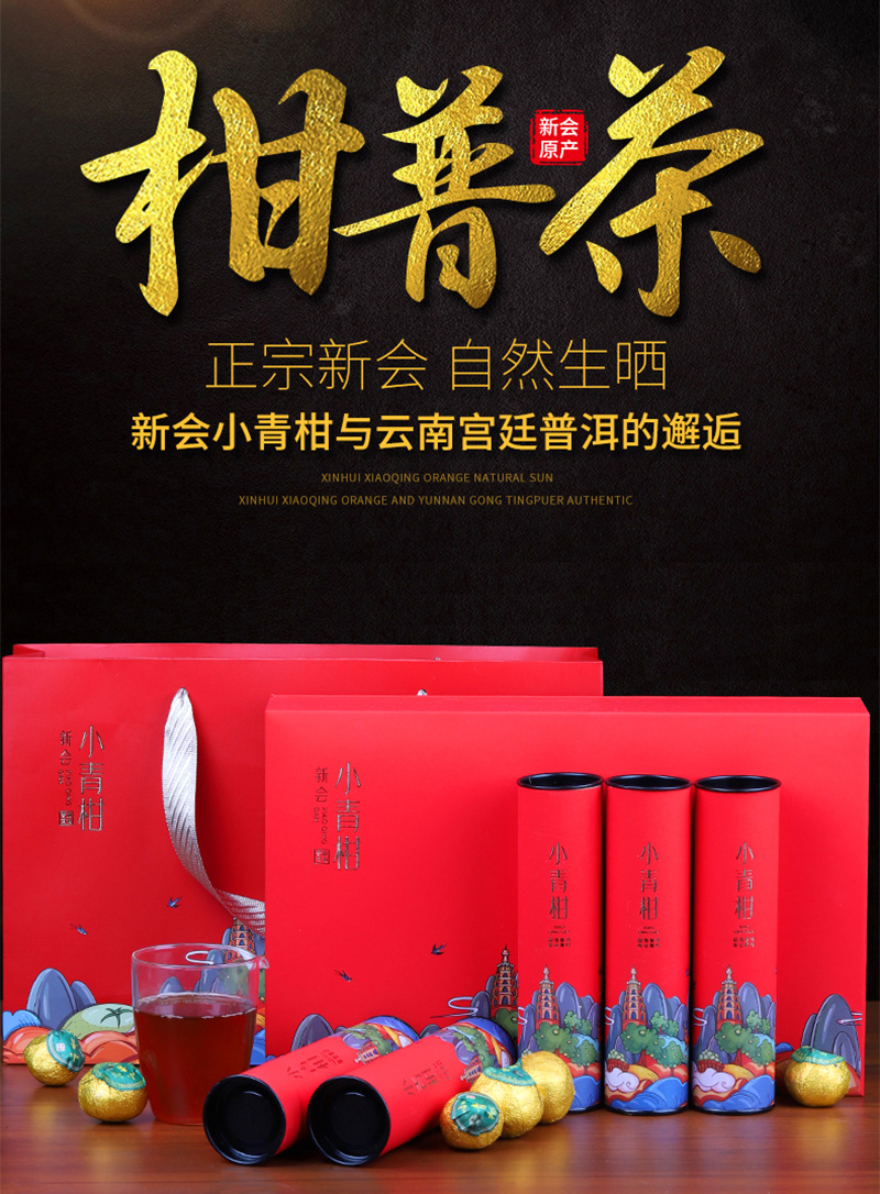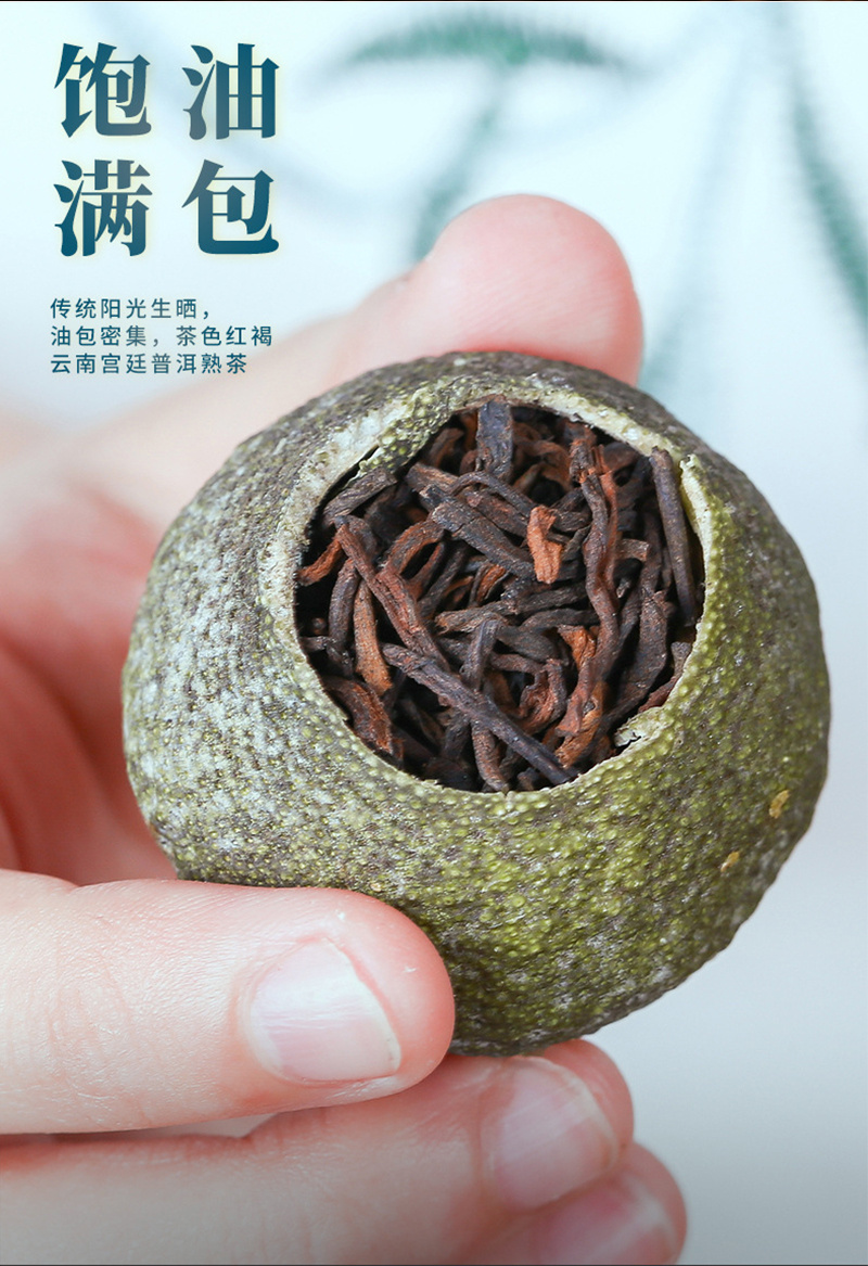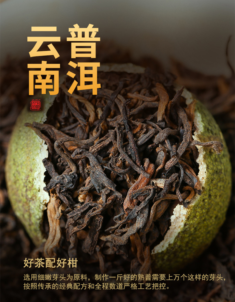 【小青柑国潮礼盒】2、新会小青柑和云南普洱互相吸取各自精华继而陈化,茶汤入口醇厚滑爽,香气久经不散,耐泡一整天(250g)
