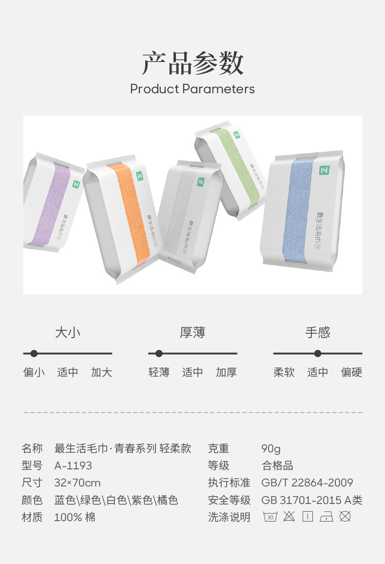 3条装 最生活毛巾.青春系列(轻柔款)