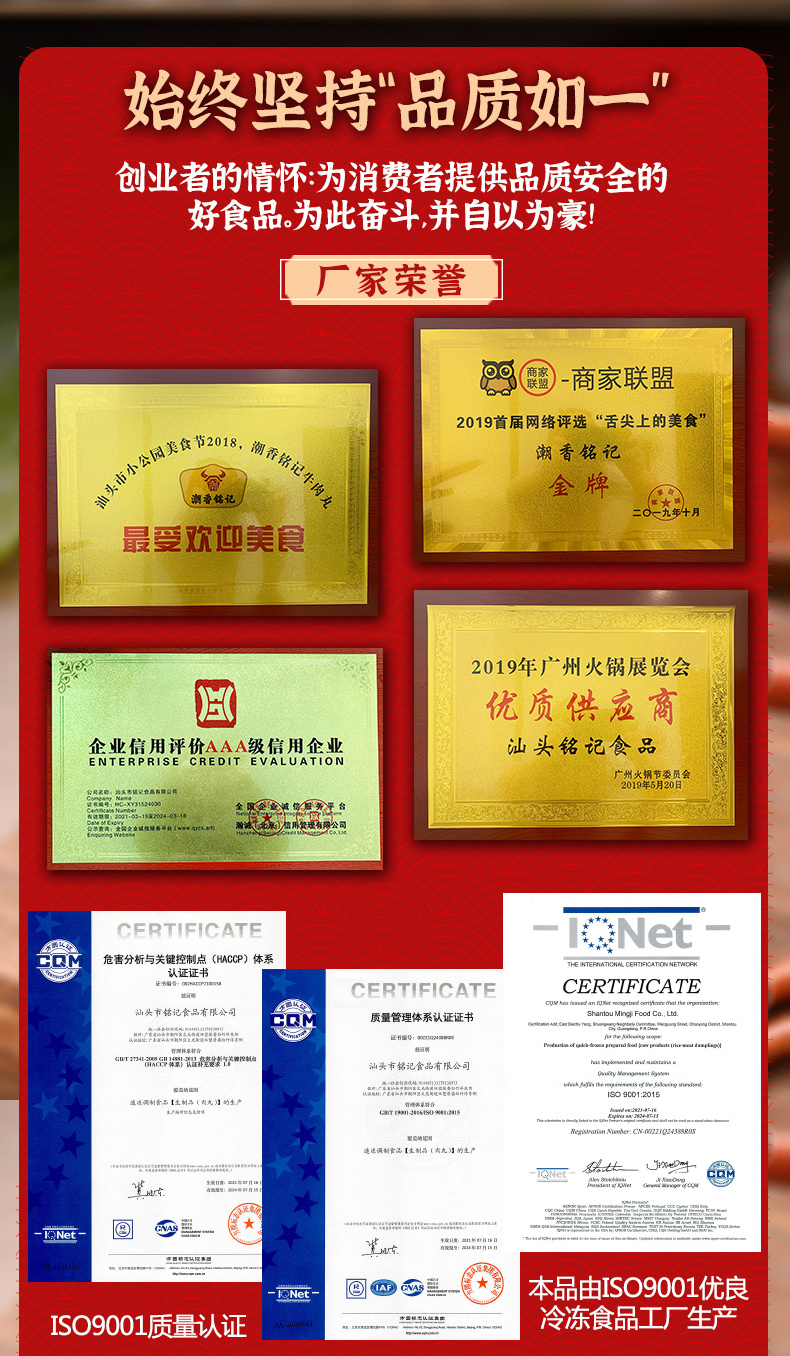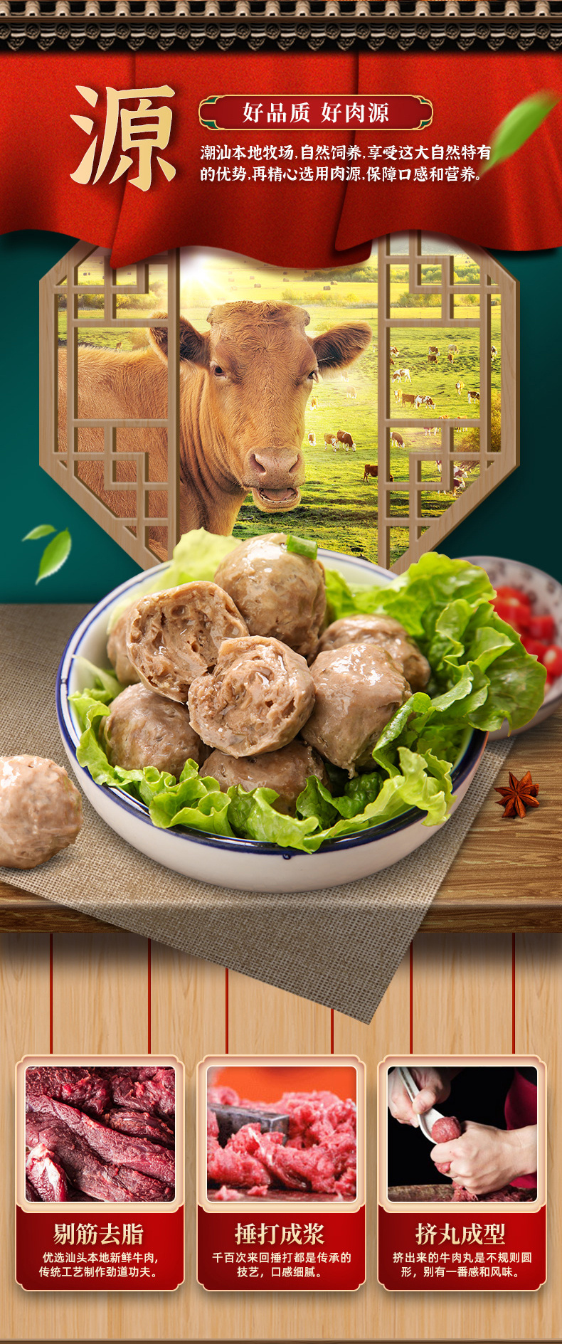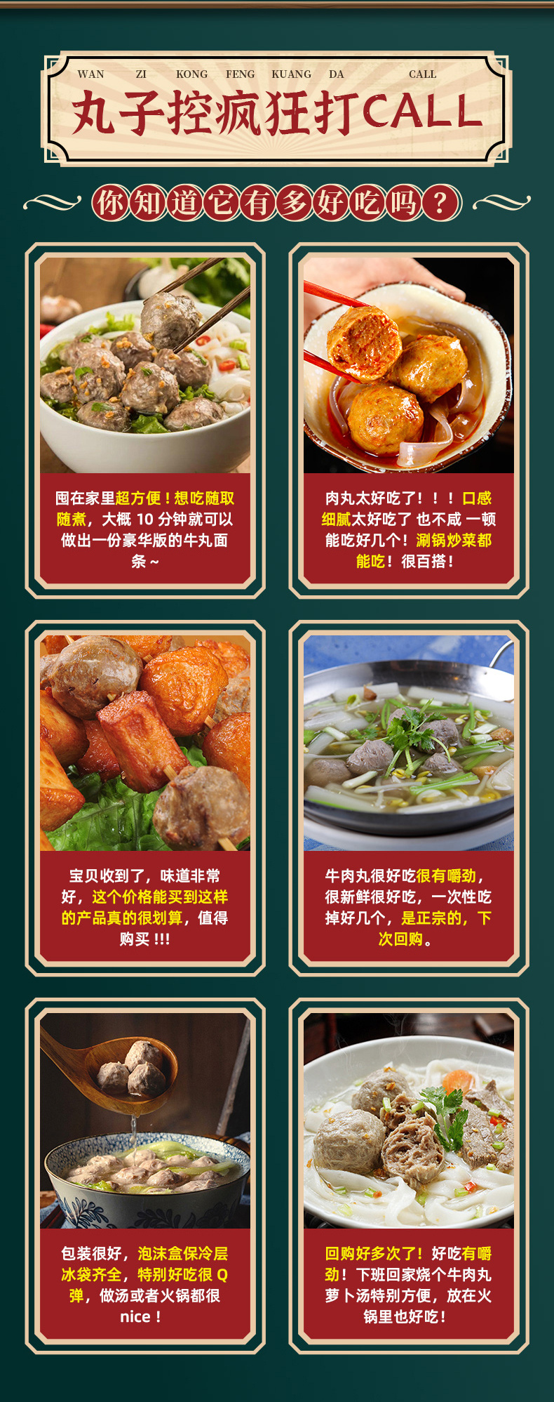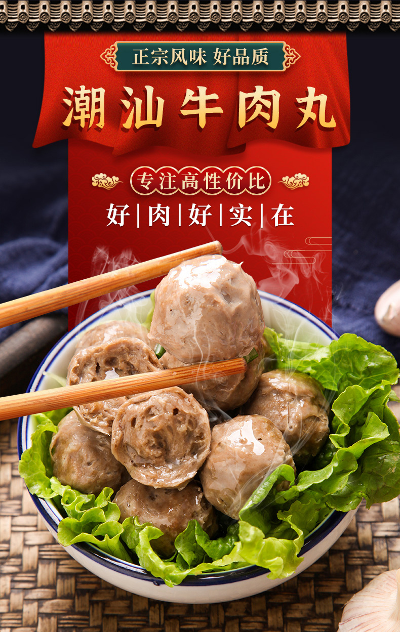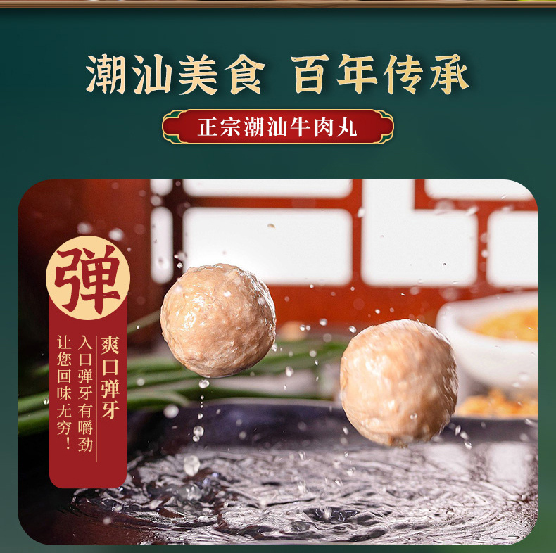 【2斤装】潮香铭记正宗潮汕风味爆汁牛肉丸牛筋丸 250g*4袋