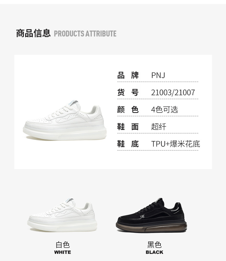 PNJ 阿甘鞋2021秋新款增高情侣休闲厚底小白鞋运动鞋街头女鞋潮 PNJY21003-PNJ21007