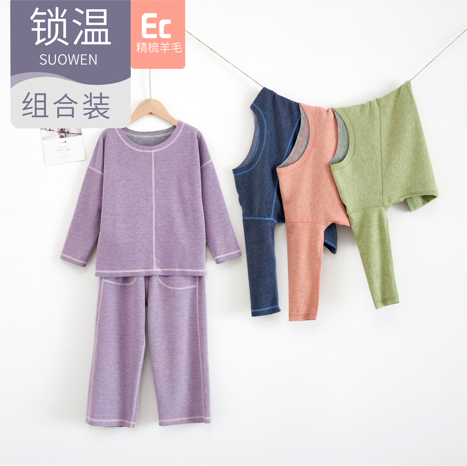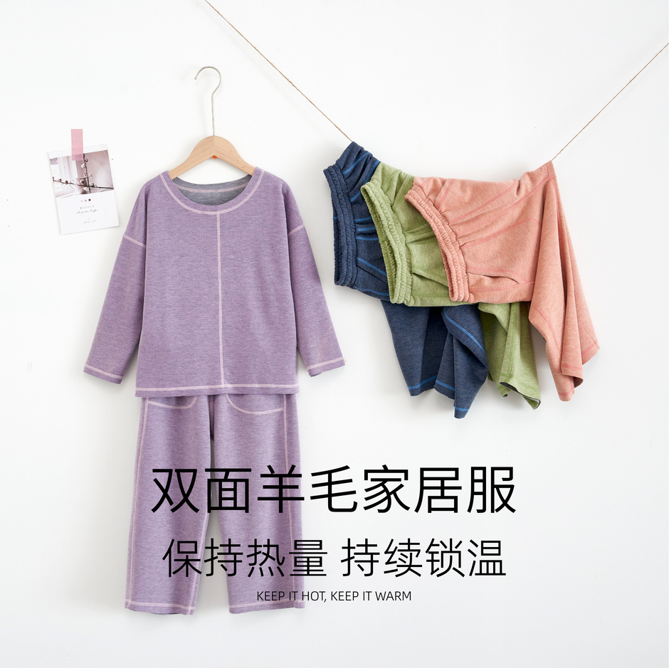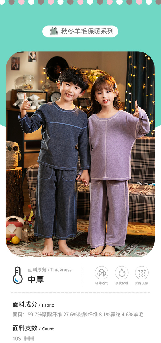 (4套装)【羊毛儿童家居服】进口澳毛40S精梳羊毛纤维,羊毛+双面磨毛,双层保暖