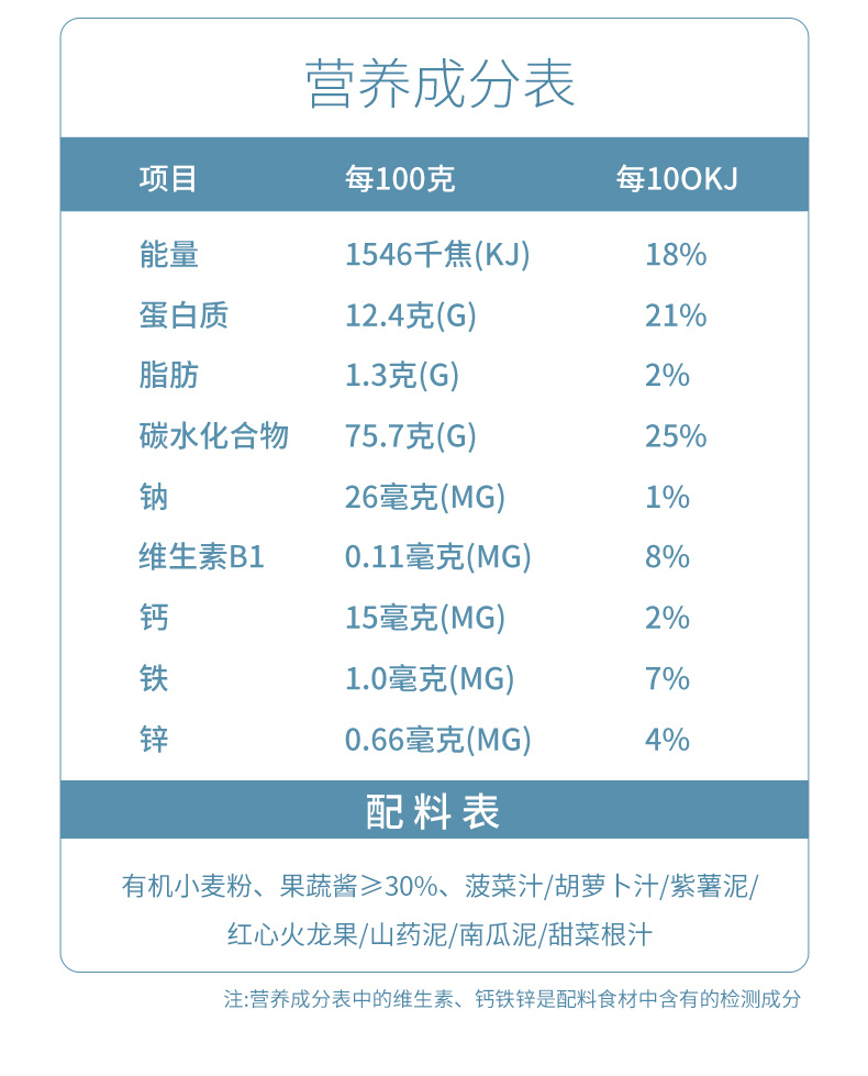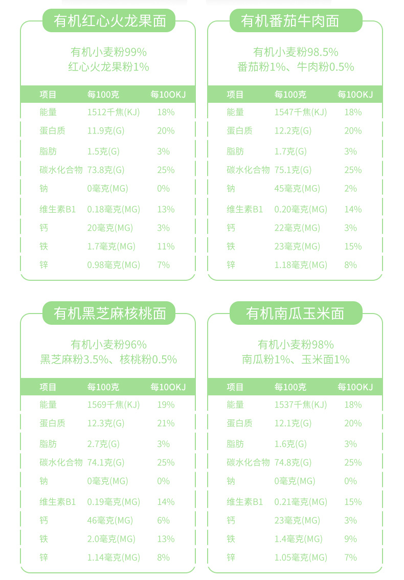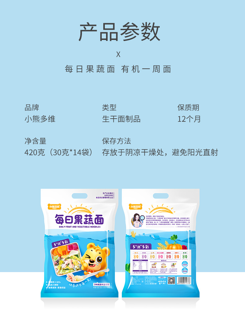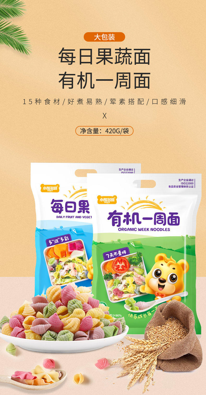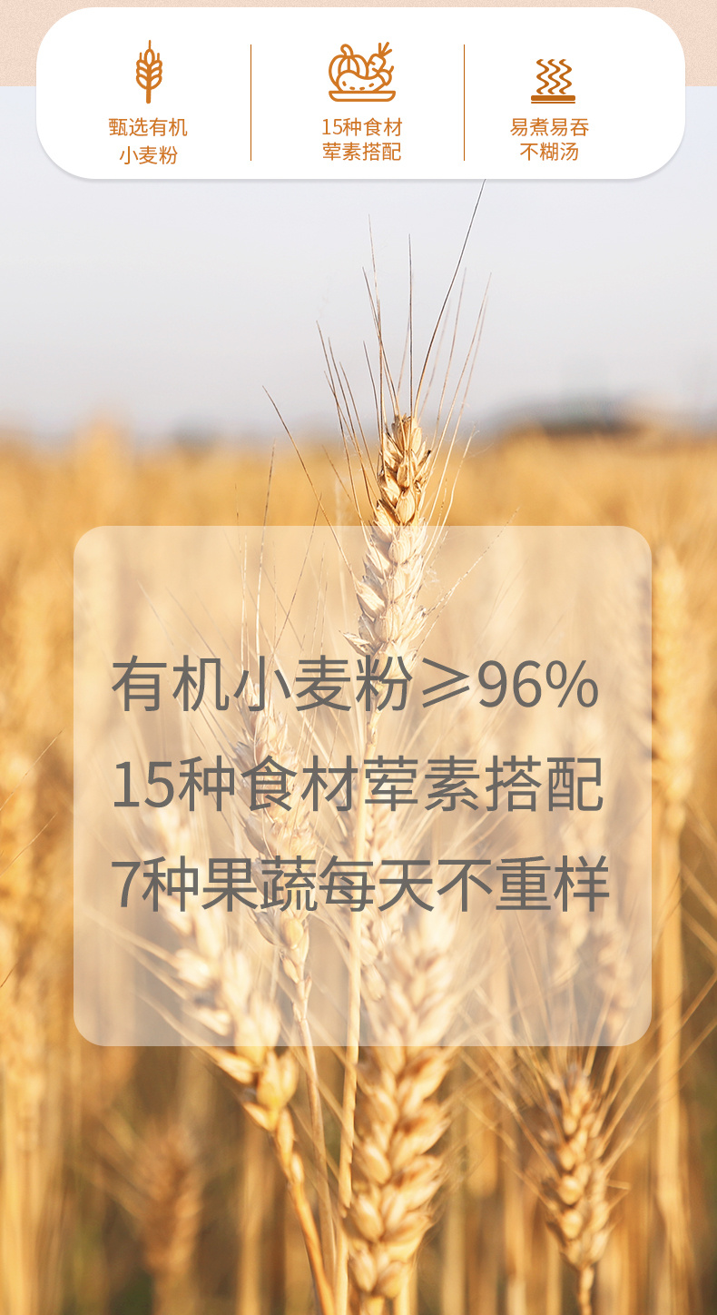 【2袋装,宝宝一吃就爱上】有机一周面/果蔬面,有机小麦粉含量>96%,果蔬浆含量≥30,%低温4-5小时烘干,不添加食用盐不伤宝宝肠胃(420g/袋)