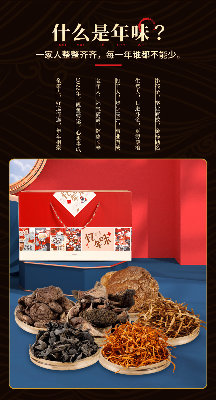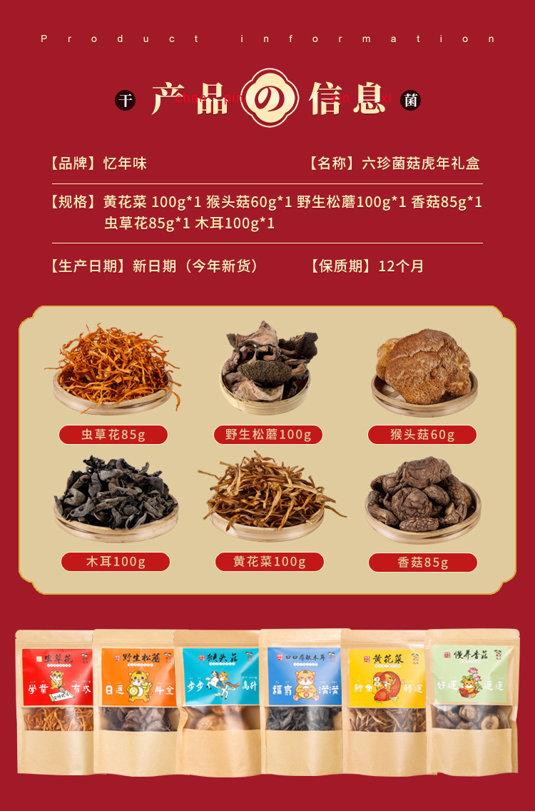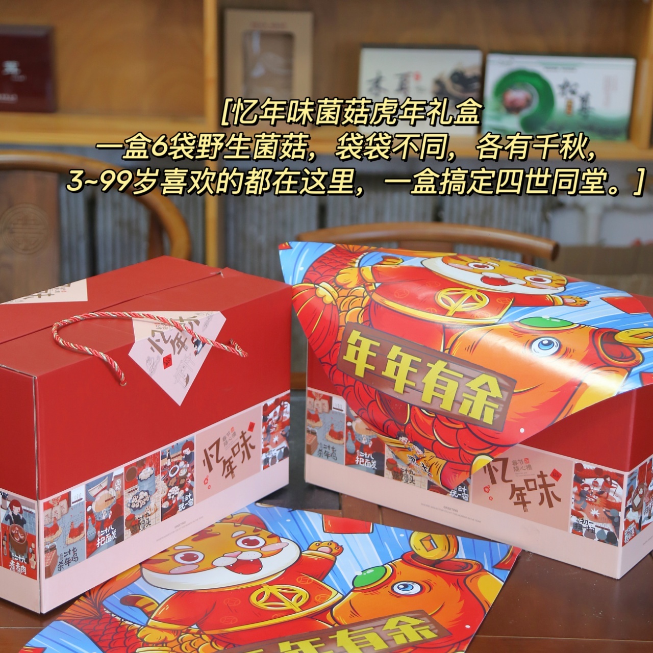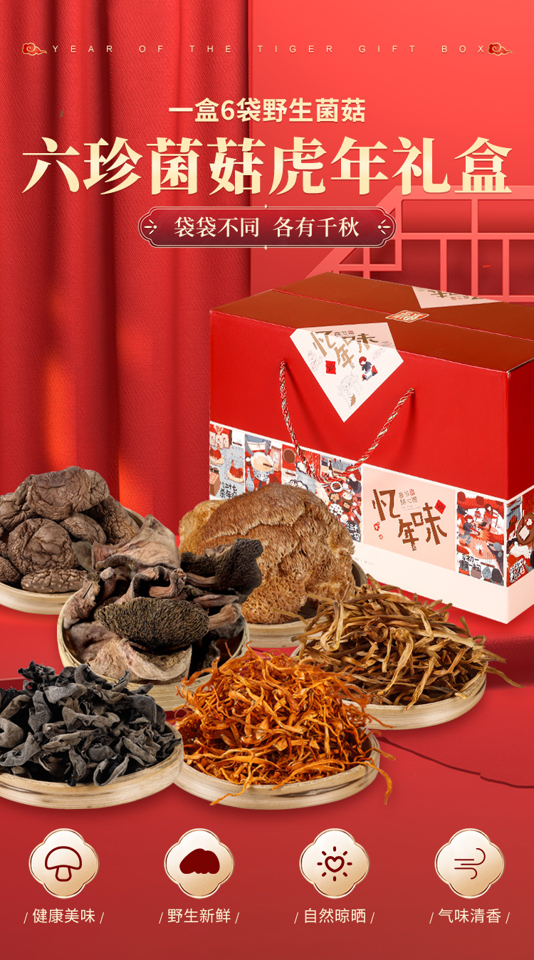 【长白山山脉原产地直供】忆年味六珍菌菇礼盒,100%野生采摘,自然晾晒,真空锁鲜,营养价值满满,定制礼盒包装,送人有档次(共552g)