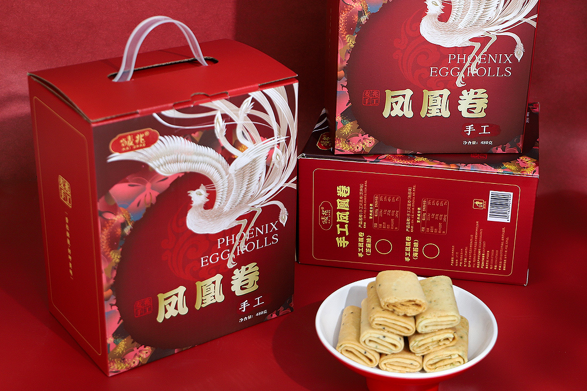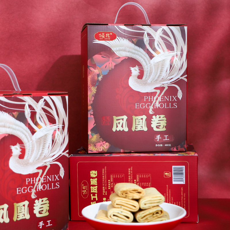 【手工凤凰卷新年礼盒】凤凰吉祥,送礼相伴,有吉祥之意,大气有档次,传统手工制作,5小时文火烘焙,0香精,0添加(30-35个左右480g)