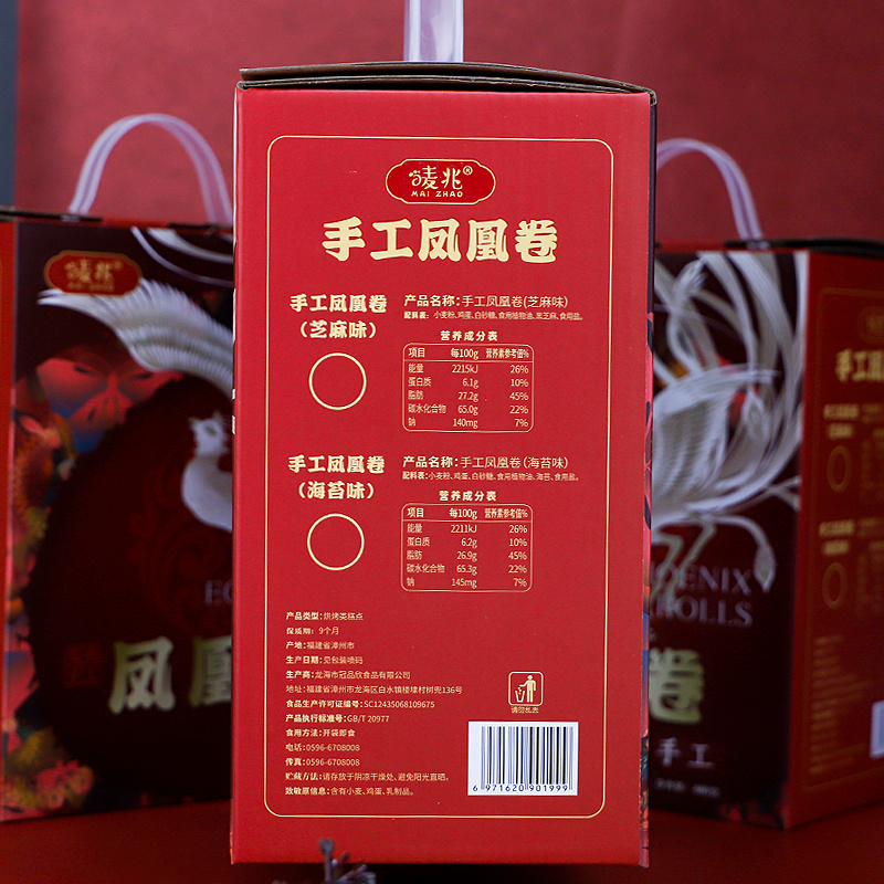 【手工凤凰卷新年礼盒】凤凰吉祥,送礼相伴,有吉祥之意,大气有档次,传统手工制作,5小时文火烘焙,0香精,0添加(30-35个左右480g) 芝麻味