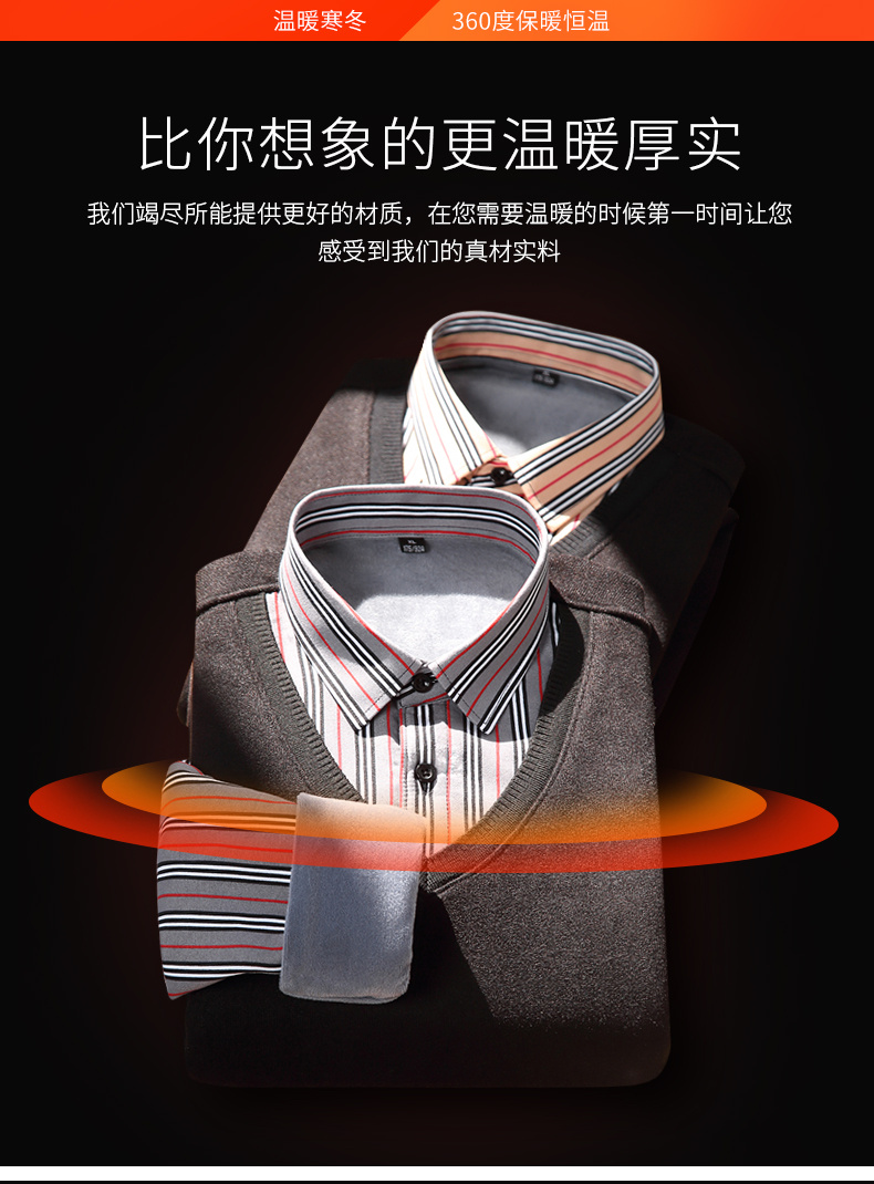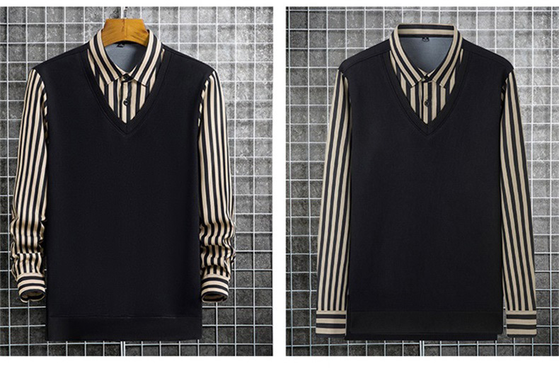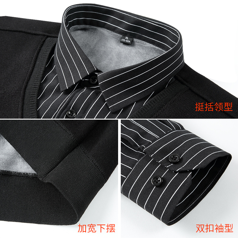 【专柜品质秋季新款针织衫】加绒加厚保暖假两件衬衫,精选不缩水面料,触感柔软,透气性好,保暖性佳,3D立体版型,百搭耐看 卡其条纹(JLJ9058-1)/L(建议身高:160-170cm 建议体重:100-115斤)