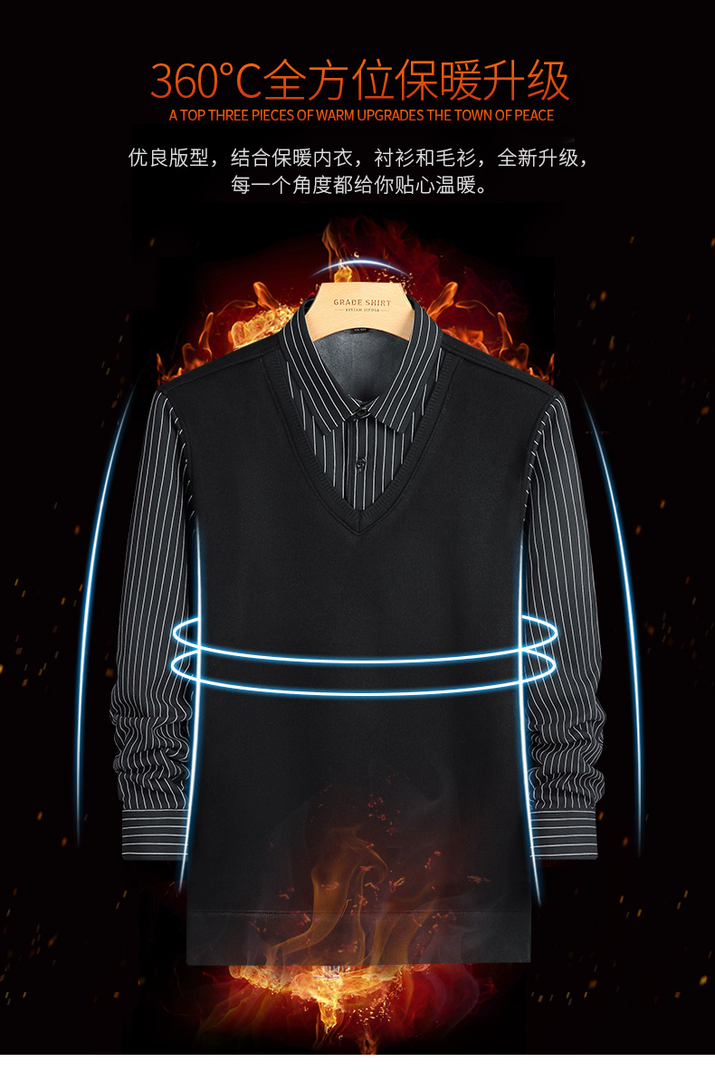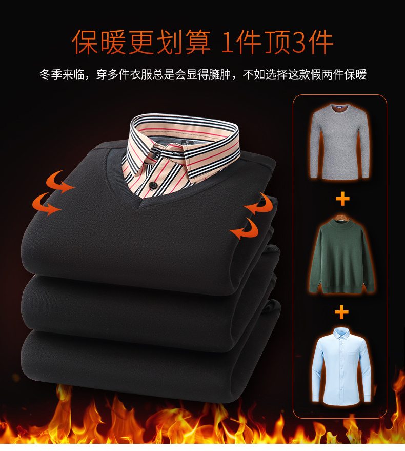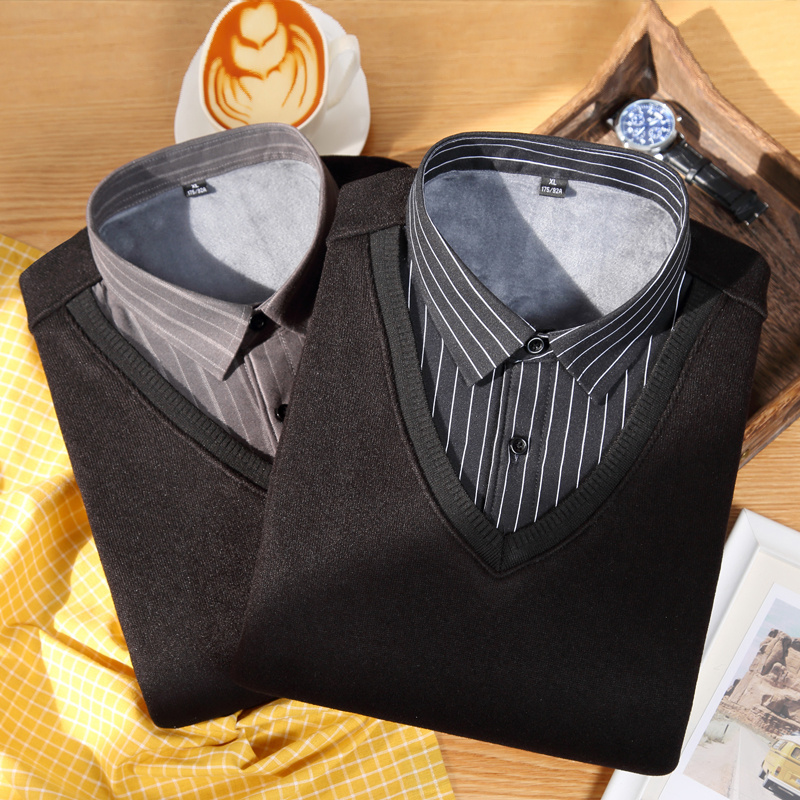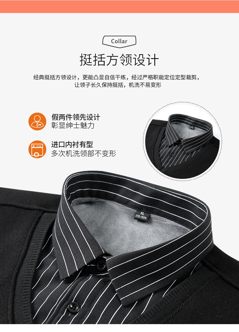 【专柜品质秋季新款针织衫】加绒加厚保暖假两件衬衫,精选不缩水面料,触感柔软,透气性好,保暖性佳,3D立体版型,百搭耐看