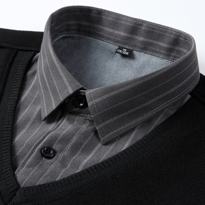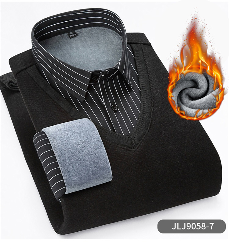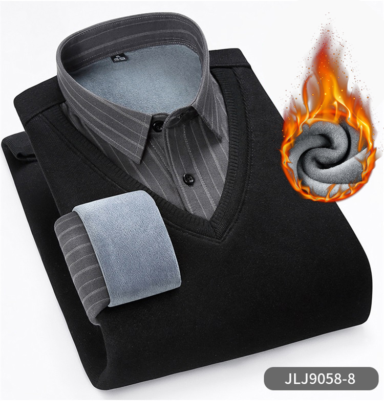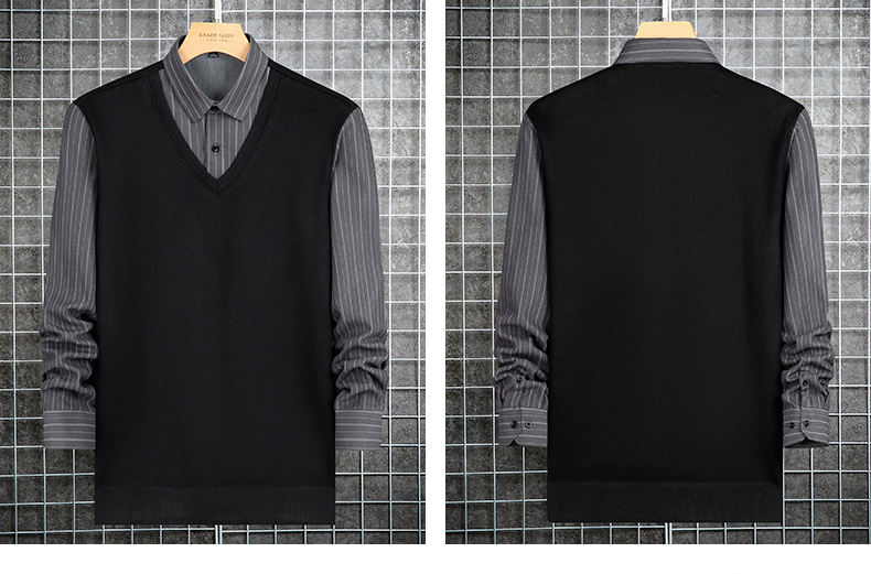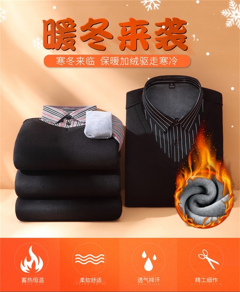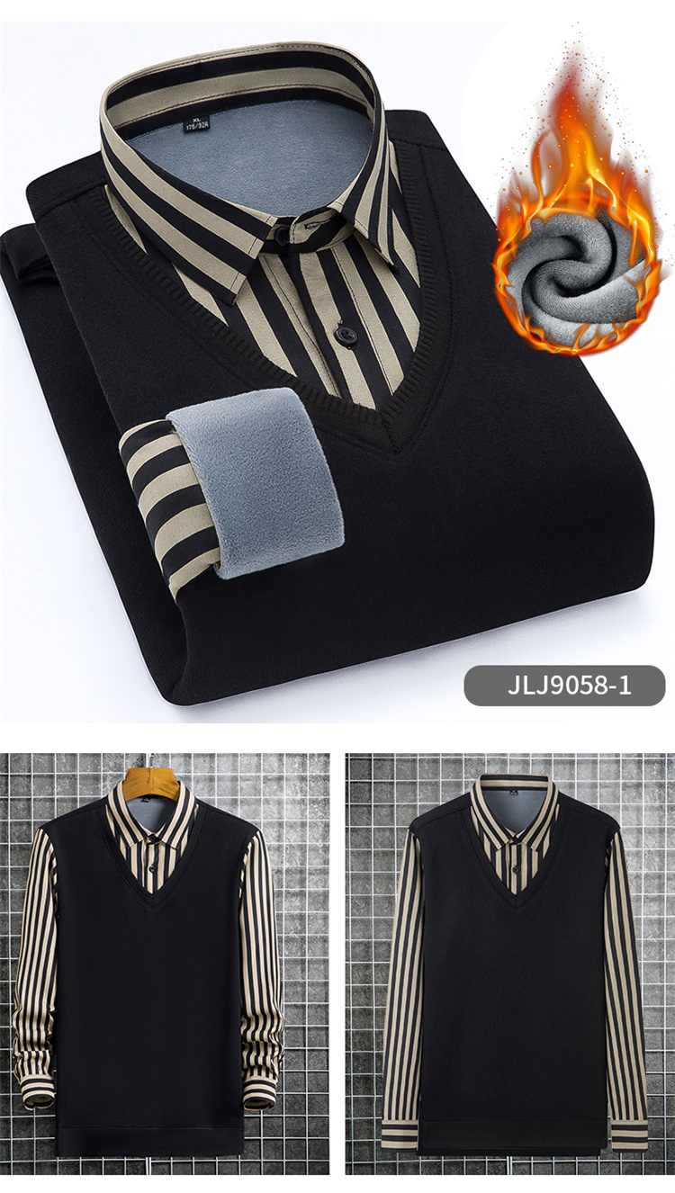 【专柜品质秋季新款针织衫】加绒加厚保暖假两件衬衫,精选不缩水面料,触感柔软,透气性好,保暖性佳,3D立体版型,百搭耐看