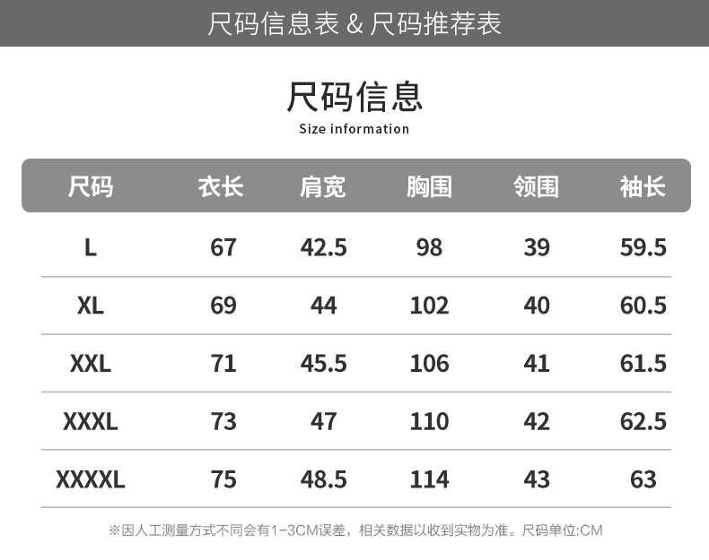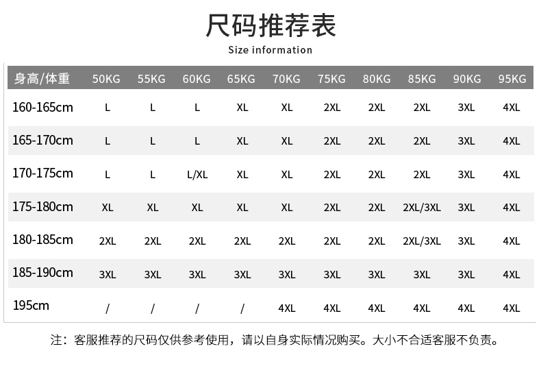 4XL(建议身高:185-195cm 建议体重:170-190斤)
